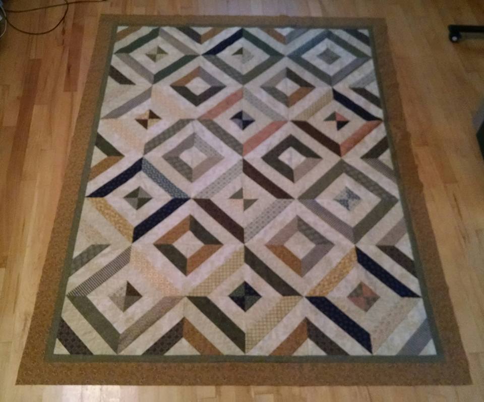 It's a surprise for my friend's mom who sent the majority of the fabrics to me. She purchased them years ago to do something (anything?) with them, then realized she wasn't going to and mailed them to me hoping I could use them, since I sew. I decided to make her a quilt out of them. I did have to add some fabrics to it, but I used mostly what she picked out. I hope she likes it.