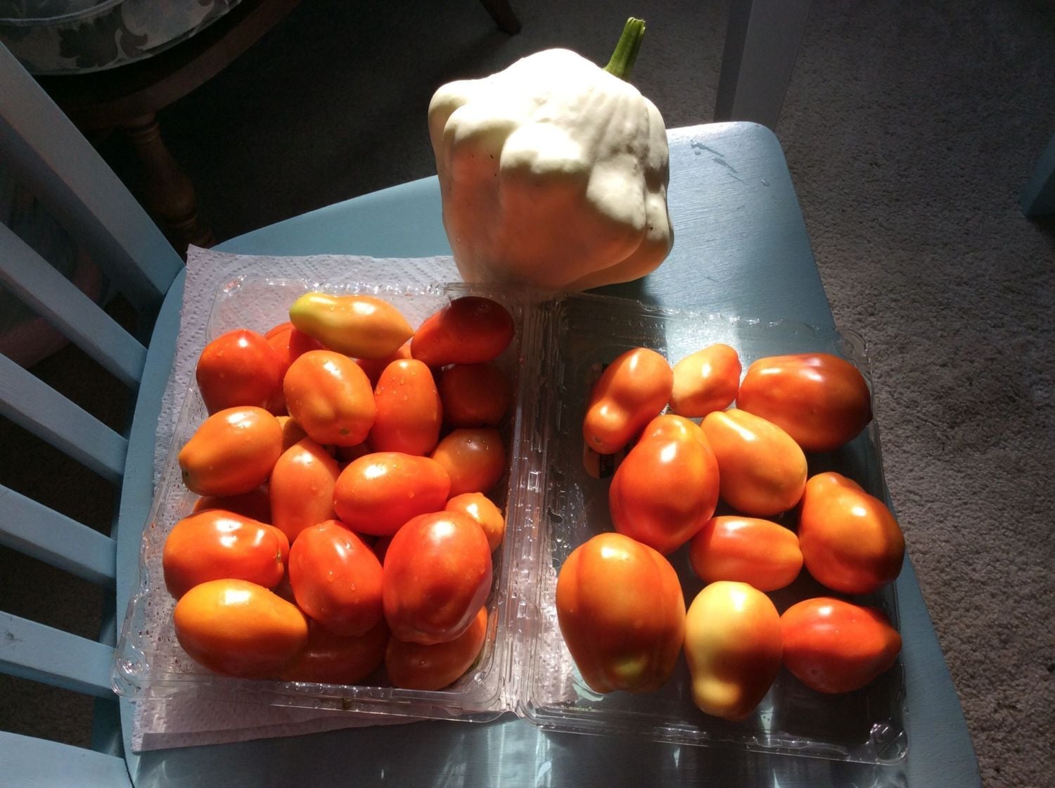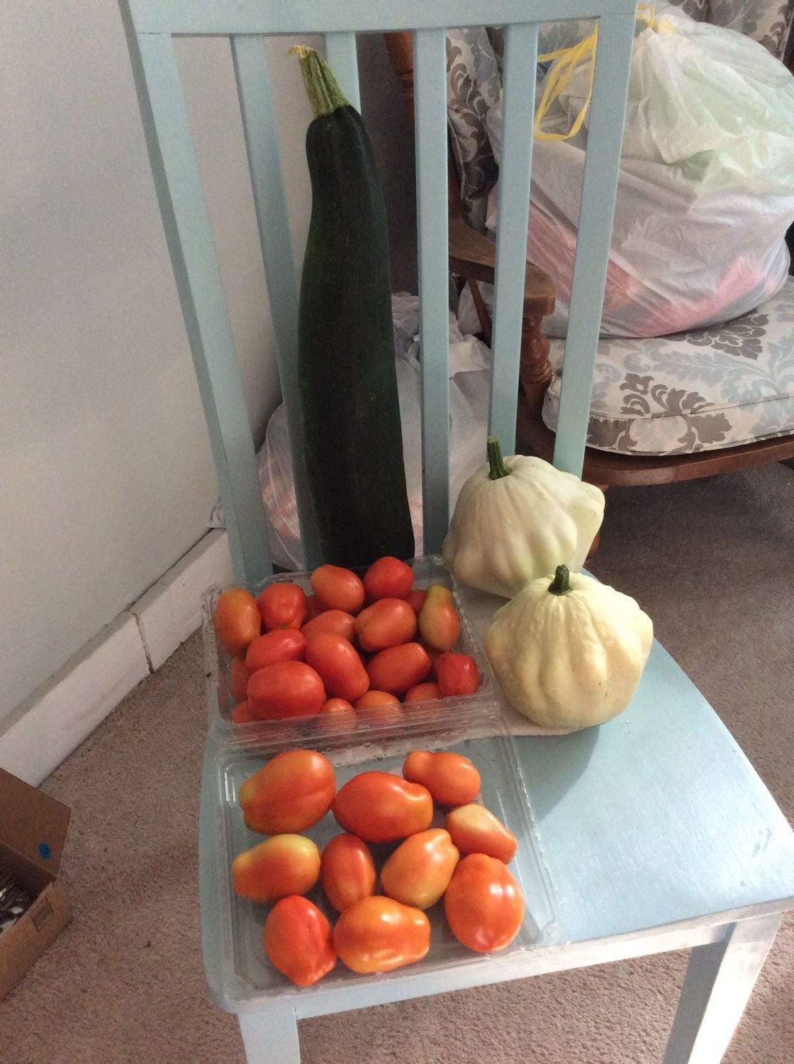 I had seen you guys post some beautiful pictures of a little bit of everything so I thought I would add some that I took today. I owe this to all of those little fertilizers walking around in my yard. My Roma tomatoes are just huge, not all of them but a lot of them and I got the biggest zucchini I have ever grown in my garden other then when they get huge around and are overgrown. The squash I've gotten those white squash I really can't think of what the name of those is but these guys are way bigger than what I had last year. Just wanted to share.