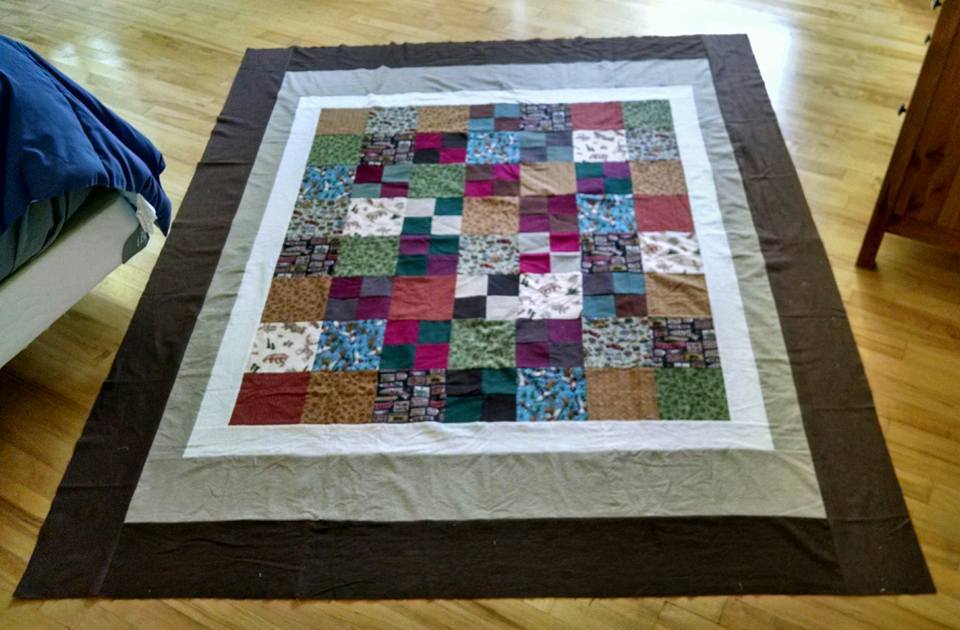 Got the top for dad's quilt finished this morning. My sister had it 99% done - I just had to add the top and bottom borders and fix a couple seams where she didn't get all the fabric all the way caught in the seam.