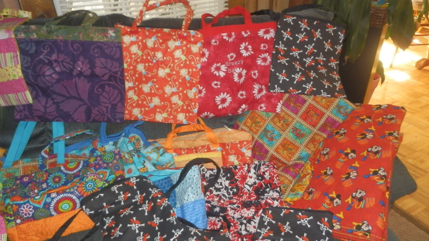 Here are some pics of the sewing I have been doing. a couple baby blankets and some totes and bags too boot!