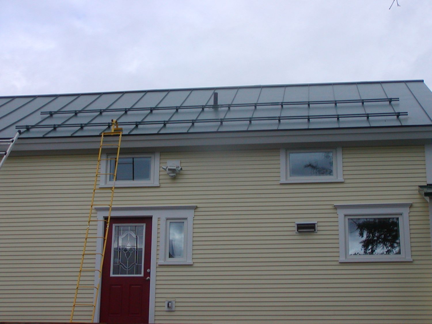 SCG: Even with the old shingles under the new metal roof, I would put rails or angels in locations over doors. You don't want that stuff hitting someone and you probably don't want it all sliding off in a big pile in front of the door either.