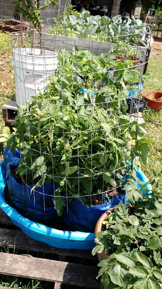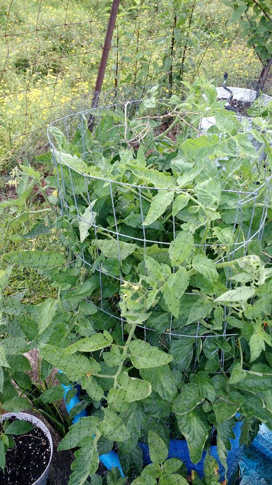 Ya this is a pic of two tomato plants with wire around them they are larger now to the top of the wire.@chickadoodles crazy about the mockingbird, I never would have guessed one would have tried to build a nest in a tomato plant. Your tomato must have been impressively thick and bushy.