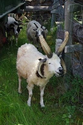 Two dairy billy goats (gruff?) were canvassing the neighbour hood... first the subdivision...got three calls in one night then and one lady phoned like every 25 minutes...could have timed her calls...why? Because these "Jacob" sheep (she knew they were goats, with beards and horns...just figures I have goats I guess) were tormenting her dog. Like it was my fault or sumthun'.