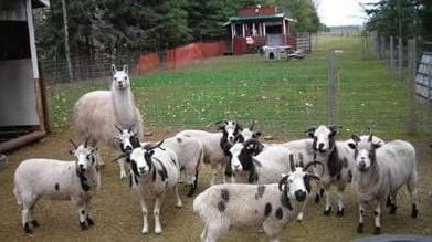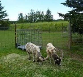 Jacobs are extremely healthy and renown for being resistant to foot problems and internal parasites. Jacobs in the British Animal Health Program are tested for Scrapie resistance as PR at codon 134, 151 and 171. Many Jacob flocks are on OPP and volunteer Scrapie health programs. Deworm, vaccinate, and provide a balanced mineral with access to salt and fluid clean water, and they will flourish on pasture. Most producers give them no grain and feed straight Alfalfa during Alberta’s winter. Jacobs are small, easy keepers and forage very well for themselves. Some browse on brush by standing up on their hind legs. Tails may be docked or undocked as they reach about to the hock and are lifted out of the way when eliminating. Crossbred Jacob offspring are often completely black. Jacobs do not run to fat like other breeds and are slow maturing on pasture. Jacob carcasses are very lean and tasty with the meat being sweet and some say it tastes like venison.
