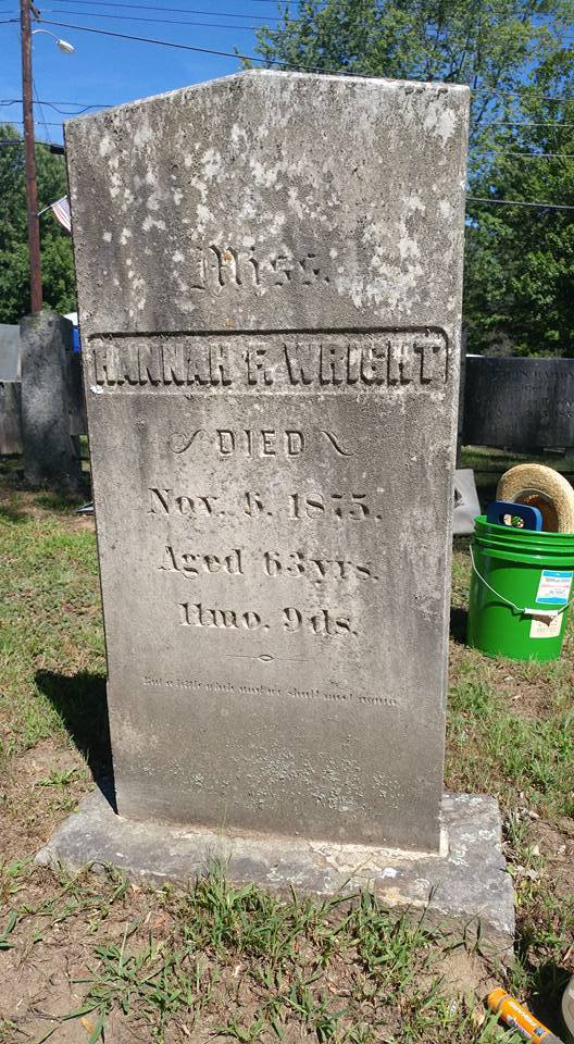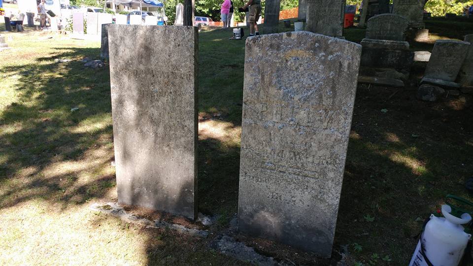 Here's a couple stones me and my partner cleaned, just with water and a soft bristle brush (before and after). BF noted how long it had to have taken us based upon the sun in the pictures. While he was correct that this isn't quick, we also dug out and reset Polly's footstone (it was broken off and someone shoved it back in backwards and it was all crooked - note use the cheap plastic trowels not the metal ones so you don't damage the stone and remember only free dig up small stuff - the big stones weigh hundreds of pounds - we'll be using the tripod and wood to brace those tomorrow to dig/straighten).