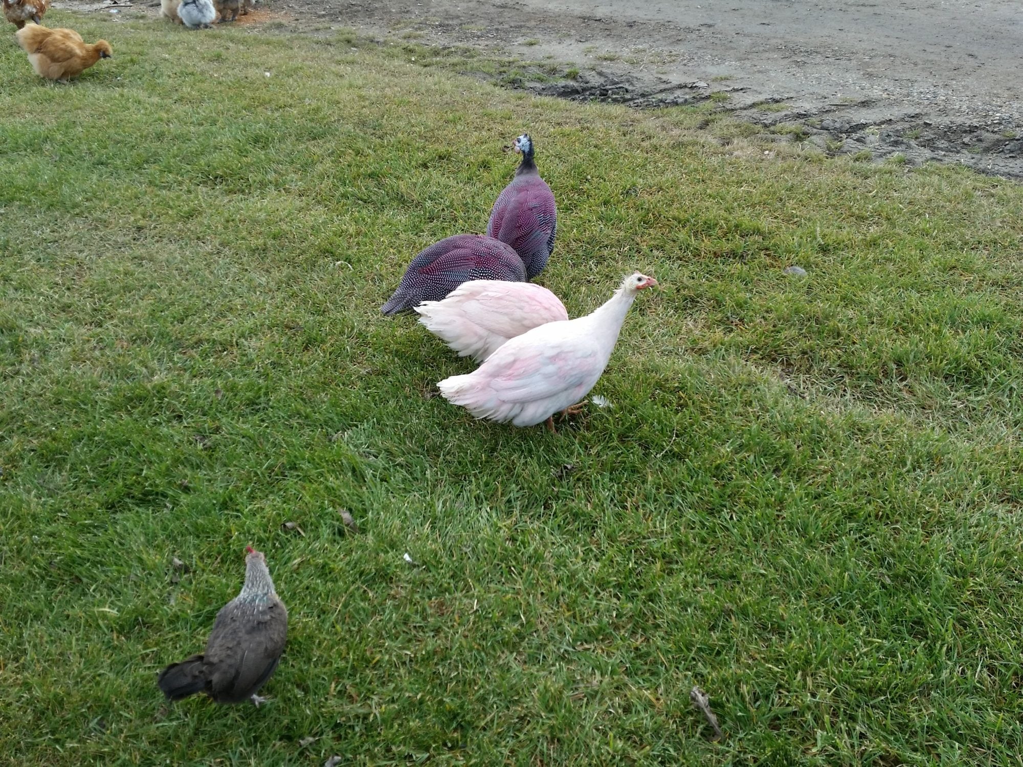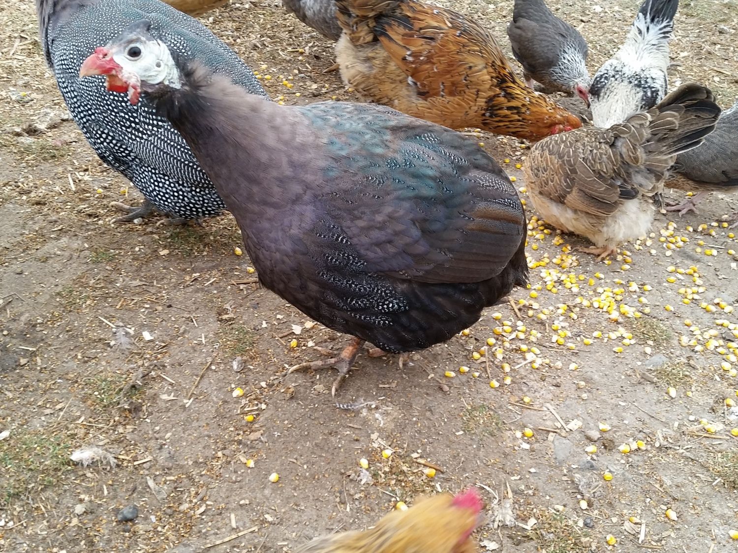 Ours do fine with the dog...and the cats...and the rabbits when I think about it.I'm just masochistic enough that guineas sound like they would be right up my alley. No kidding. DH and I were driving down the highway that is near our farm one day, crested a hill and I swear there was a flock of about 50 guineas marching down the road, covering my whole lane. I slammed on the brakes and just kept from slamming into them. We spent the next half mile creeping after them watching them try to decide which way they wanted to go, left, right, straight. They finally decided to go down into the ditch letting traffic pass. I think my husband asked me if they were nuts and I told them, no, they were Guineas and at that moment I started considering getting some of my own little psychotic birds. I admire animals that march to the beat of their own drummer.