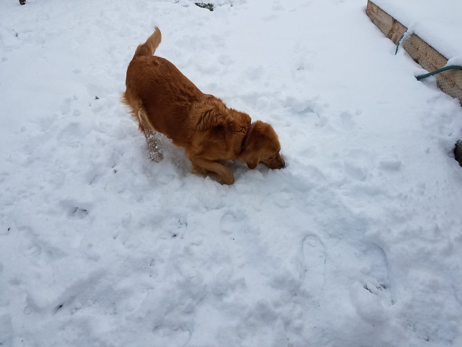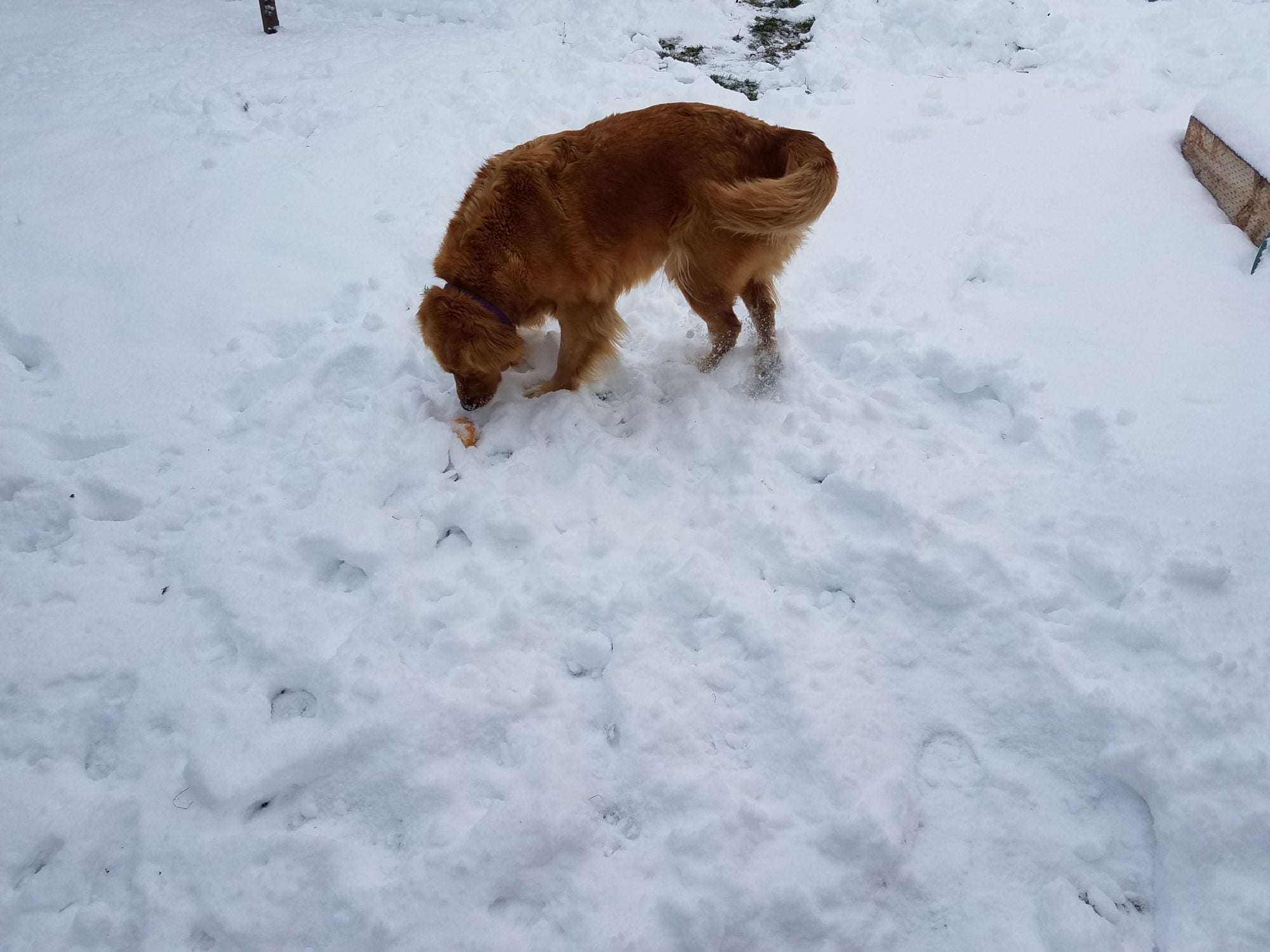Missy looking for an apple I covered with snow.