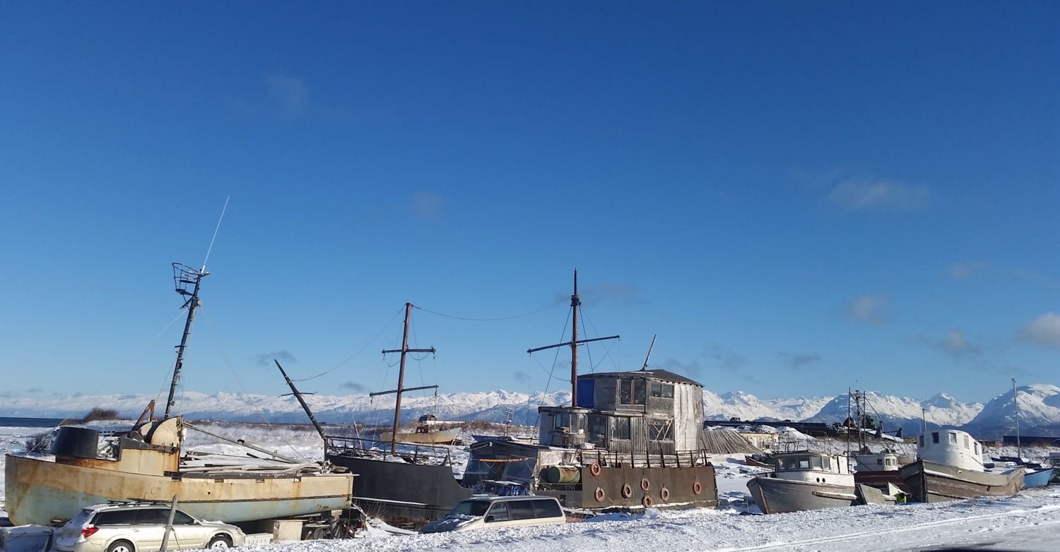 That is the dead boat graveyard out on the Spit. The Spit is a flat spit of land.. :rolleyes: .very thin and very long that juts out into the bay. The harbor is out there. Those dead boats are mostly lived in...but never floated I don't think.