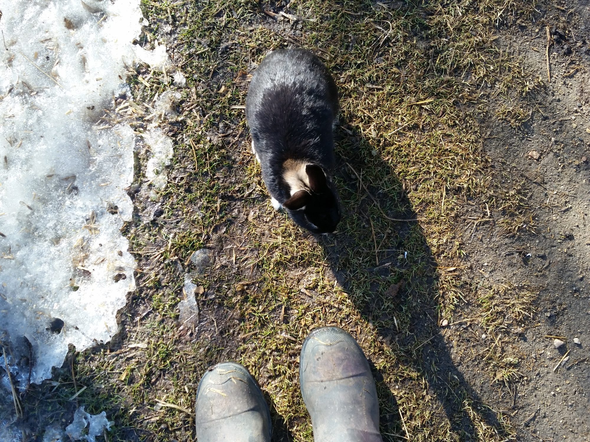 Someone mentioned what would happen if you let your bunnies loose? They run up and almost trip you so you can give them millet...She comes running up and stops right in front on me so I just about get tripped trying not to step on her. Took this this morning.![]()