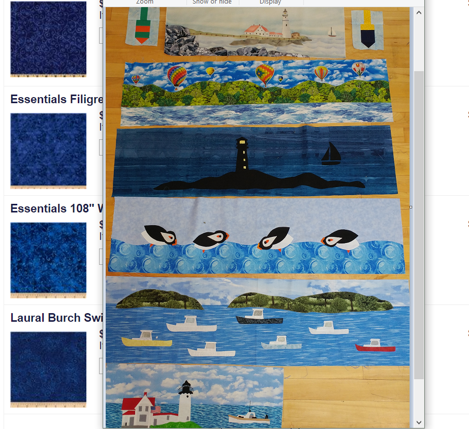 This is my (Maine) Row By Row (trying to match up sashing online since I couldn't find what I needed locally).