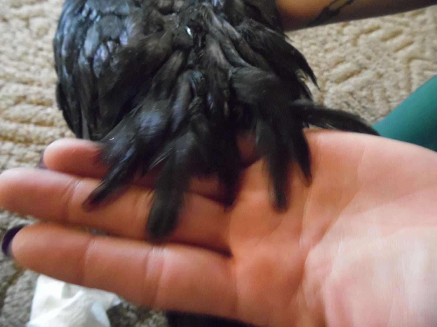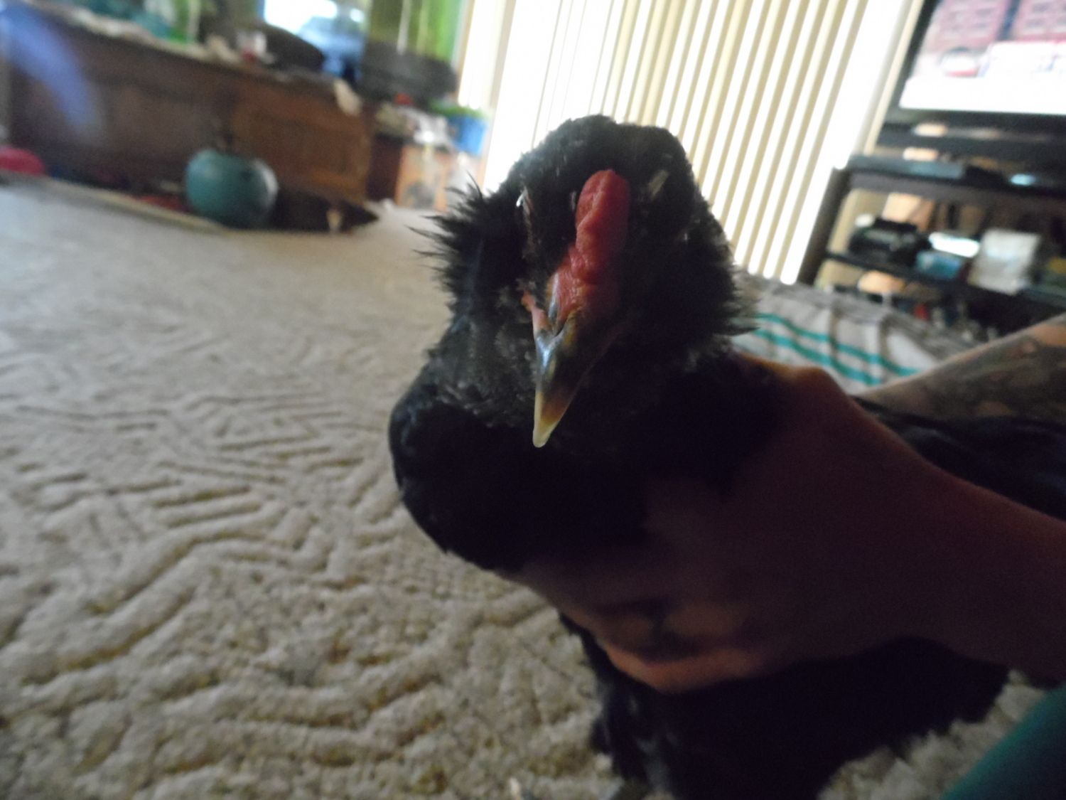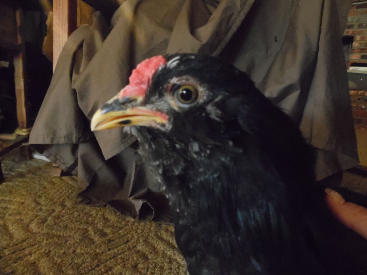 The roos comb was almost twice as big as this.He also had a large red spot right behind the tuft near the ear, her's is pale.