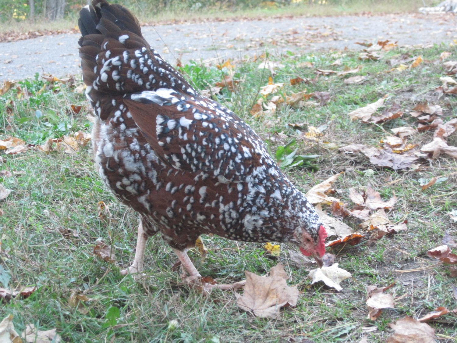 I have often seen a Black Autralorp wandering freely in the driveway of the property across the road. A rooster crowed nearby during our walk-around. :D