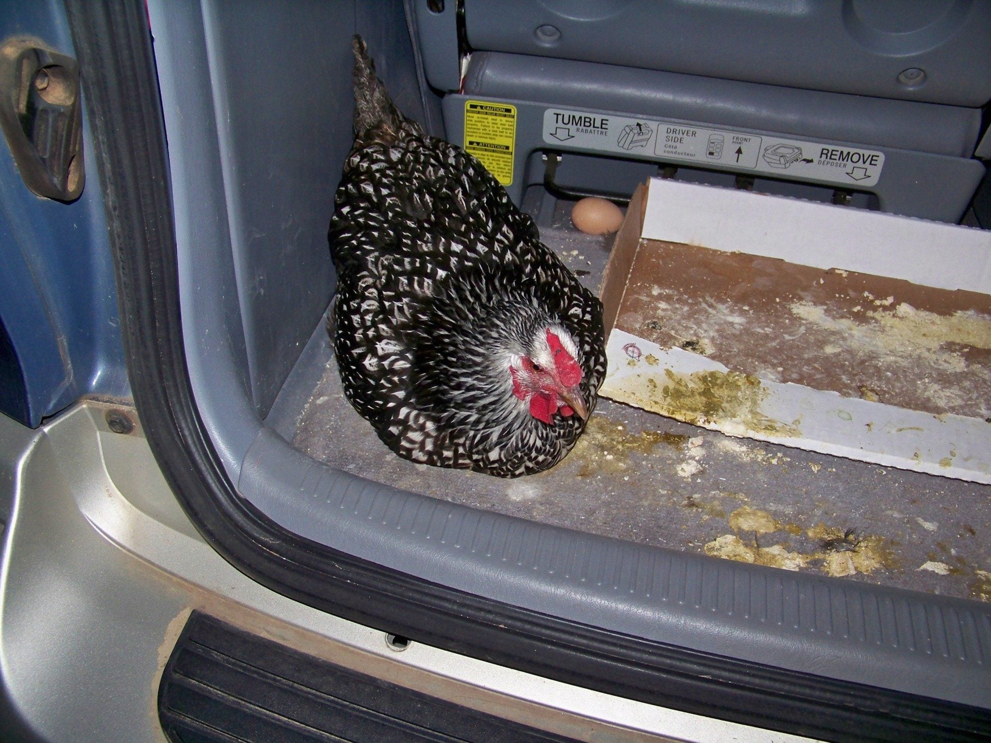 My little blue hen has become an annoying pest. I dive in the yard. TUrn off the engine, collect a few things and voila, she is on the roof!! DH mentioned he couldn't keep her out the car while he was cleaning it!!. SHe has a new place to pay her eggs.Found 1 egg so far in the car.![]()
