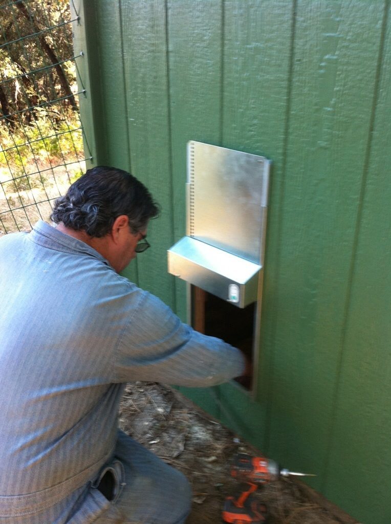 My rationale was realizing, in the original configuration, all the traffic through the chicken door would pass directly in front of one or more nest boxes in the bottom row. This would contribute to an even less private sensation for the not-very-private boxes. So, with the auto-door on the same wall as the nest unit, then most of the chicken traffic would pass to the side. Said nest unit needs to be removed from the home coop and cleaned before transporting it to the new coop. There was some eye-rolling at my explanation of nest box privacy issues. (Heck, there may be some eye-rollers amongst the Old Folks in here reading this.)