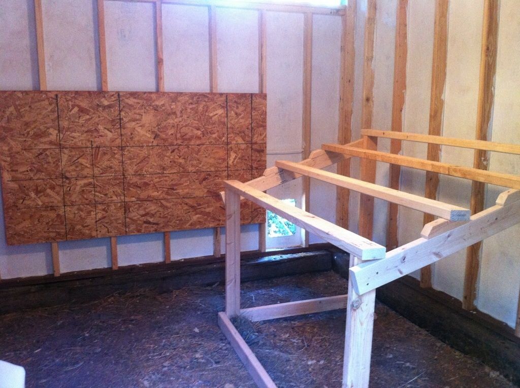 Also had John move the nest-box wall unit backing board from the adjacent wall to the same wall as the chicken door. (Luckily, John used screws instead of nails -and I knew this - so it wasn't a hugely labor intensive task. Time, .....well, I am "the customer.")