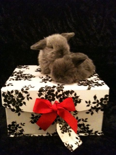 Hi Bunnymomma, it is nice to hear from you. Happy Thanksgiving to you also! Your babies are adorableHi everyone and Happy Thanksgiving! I have not been on here for a while. I have been so crazy busy the last few months with some unfinished projects. It has been so hard keeping the water thawed out this week. It takes me twice as long to feed and water everyone in this icy weather. One of my Holland Lop Does had a litter of 6. She did not have enough milk to feed them all, so I dropper fed them 2 times a day in addition to their mothers milk. They are so tame that I can pose them for these silly pics.