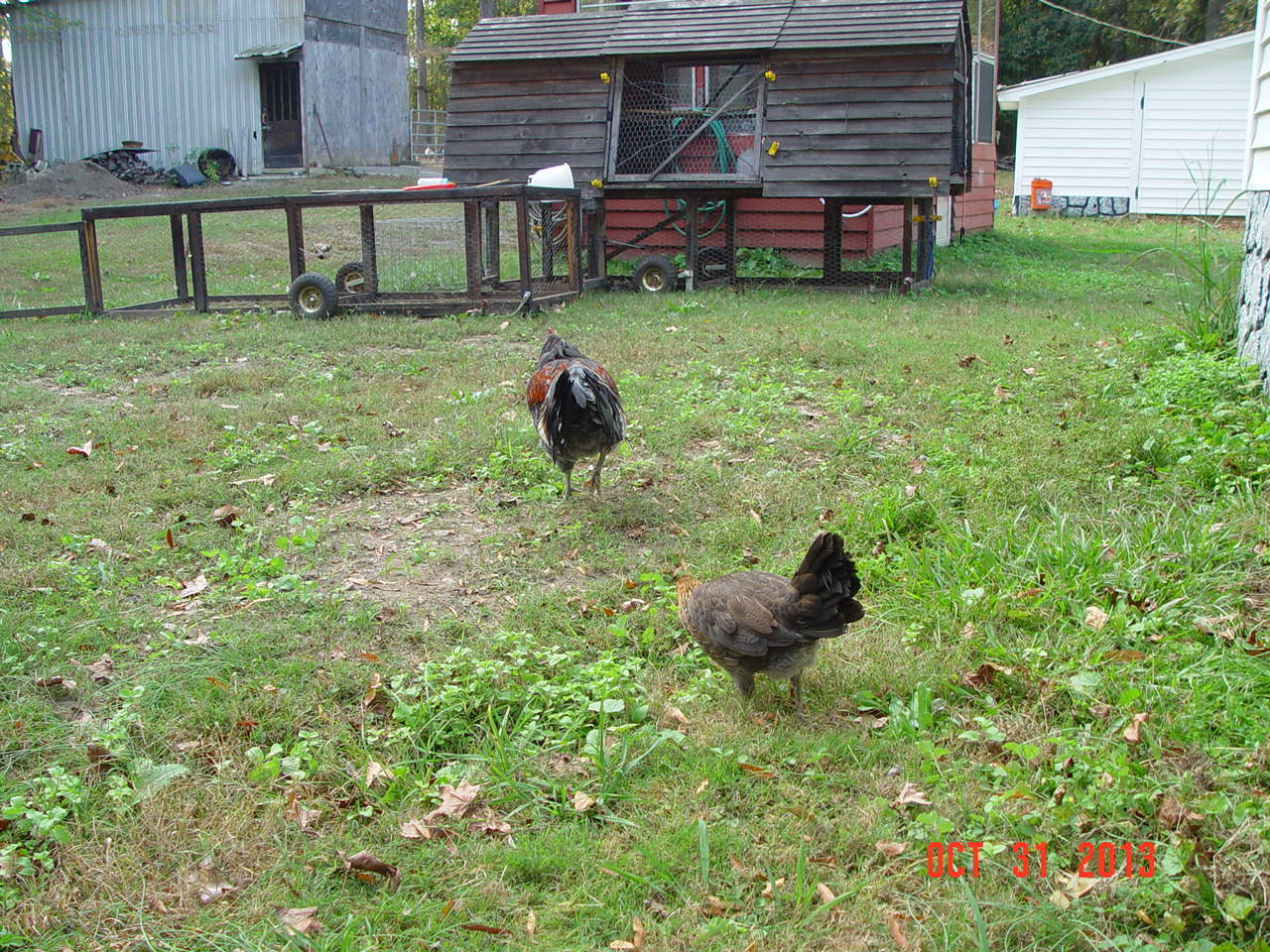 I kept her isolated about 20 minutes. Determined she would be ok, and better off with her rooster. I took her back to the chicken tractor, and they were both soo happy to see each other!! It was touching.![]()