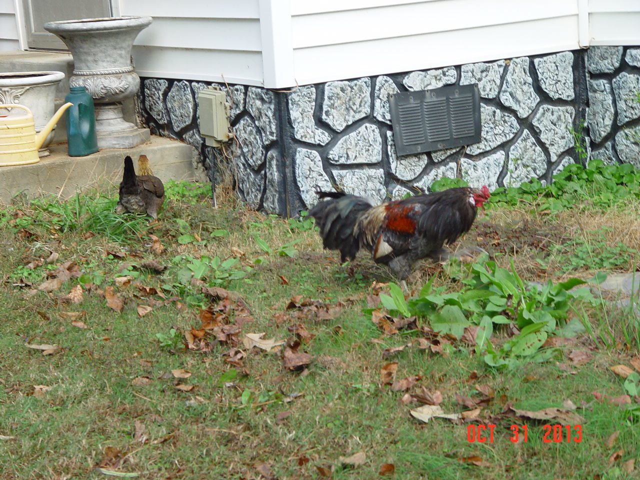 He had no injuries...but was scared out of his cock-a-doodle. He thought his little hen mate was dead.