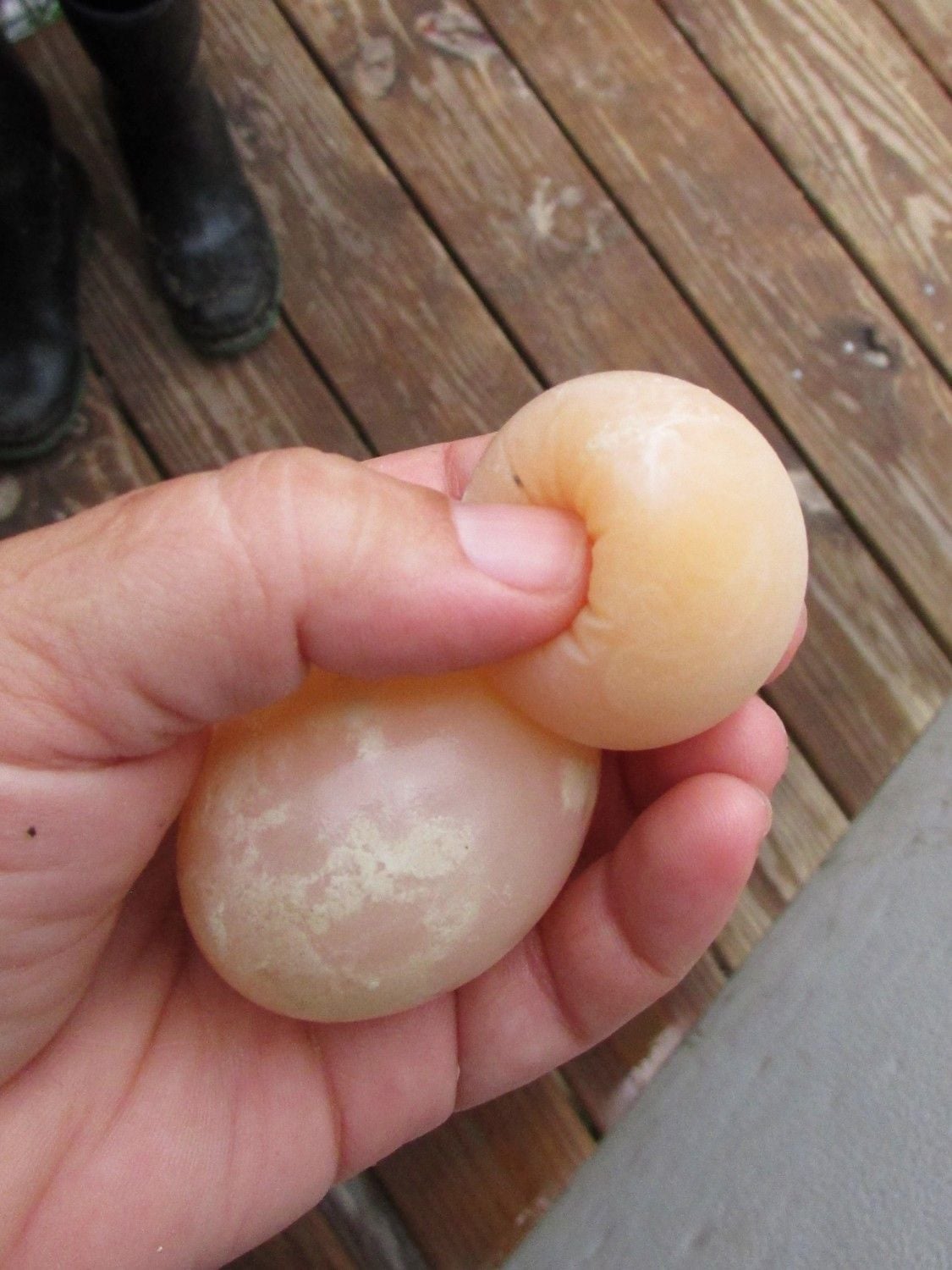 Nice eggs, pretty birds!!!Latest OE pullet, her first egg(a 40g DY!) was laid within an hour or so of when her matriarch had to be put down a few weeks ago. Serendipity, Fate, Coincidence.....whatever you want to call it. I finally got some pics of her today. So sire is Welsummer, mama was a blue laying EE. Didn't think she would lay green....yellowish legs, no beard, crinkled single comb... ......but sure enough, look at that. Now these are not the Deep Dark Olive most of us desire, Woody's sister lays a mediocre wellie egg so...... [COLOR=1D2129]Top 3 are from hens of last years hatching, same cock x hen.[/COLOR] [COLOR=1D2129]Bottom egg is from LLP just this morning, big for a pullet egg - probably a double yolker, she had to really push to get it out.(ETA:just weighed that sucker 68g!!)[/COLOR]LLP
