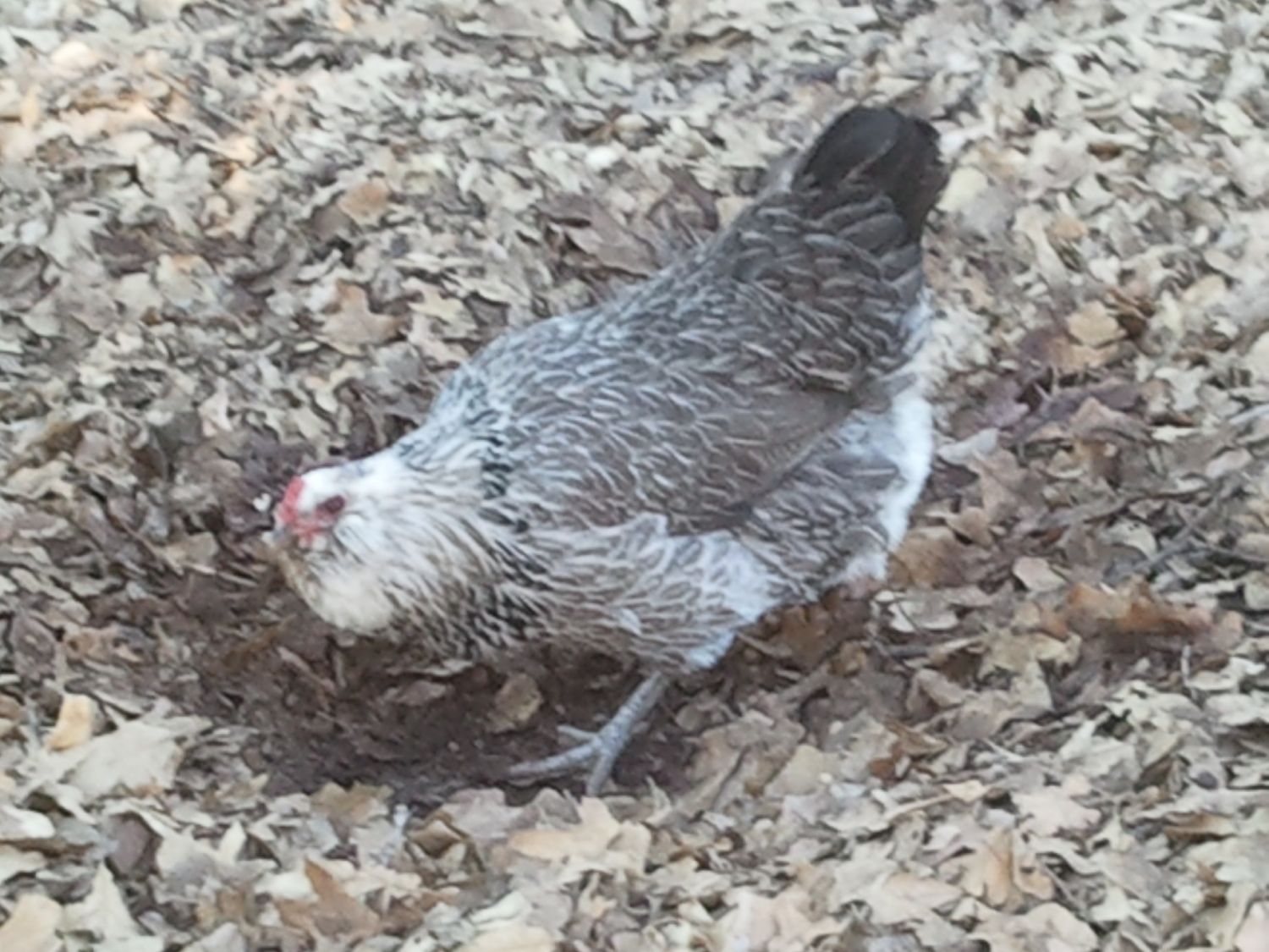 She is a F1 cross (BW Ameraucana roo X Wheaten Marans), her egg is at the top of the photo.
