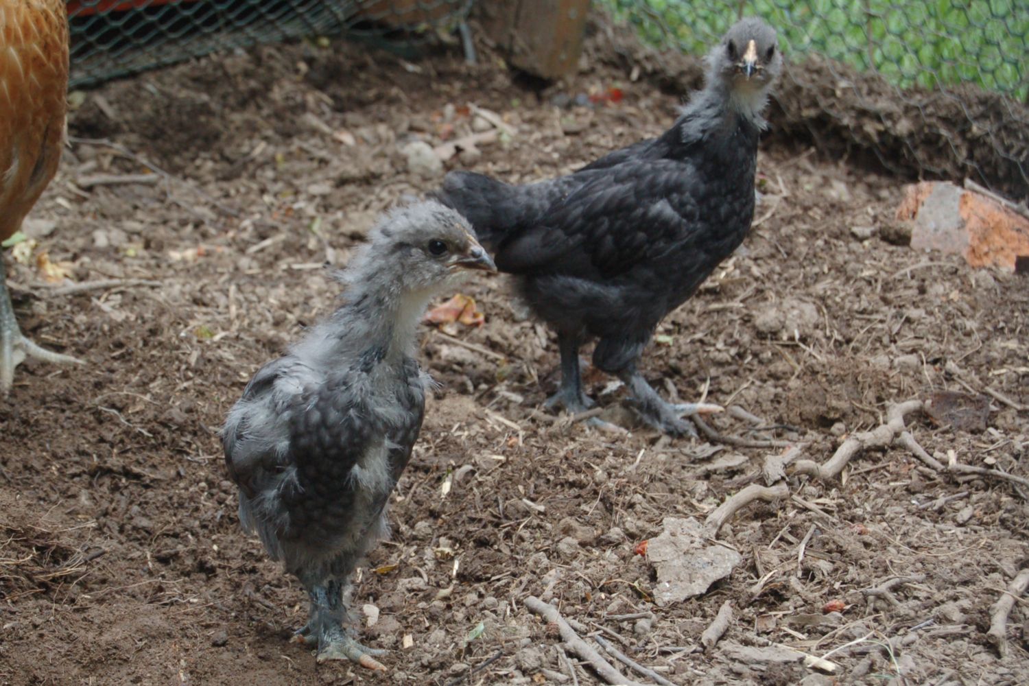Chicks 3 and 4 together, to see the difference in their coloring