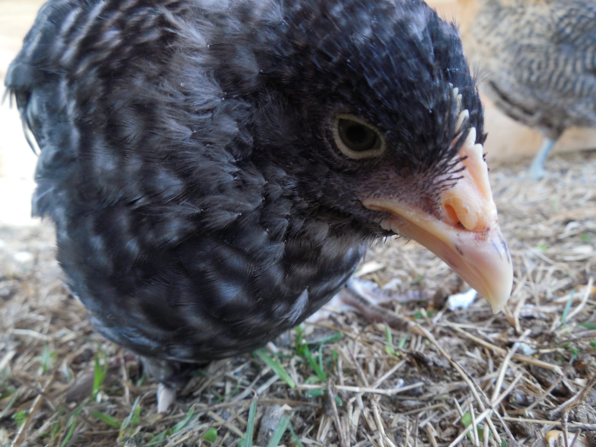 She's cute.I have one also, though mine was darker as a chick. She's 6 weeks old now. She is barred, doesn't have a crest, and she has feathered feet.