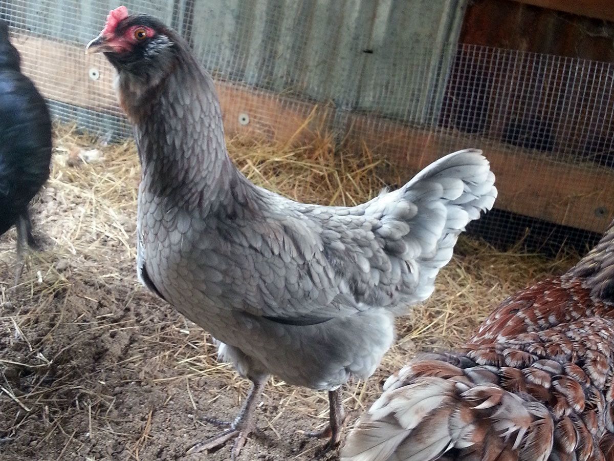 I don't own the parents so I can't really be sure about her genetics, but I was told her dad was a lavender Marans... What do you think?