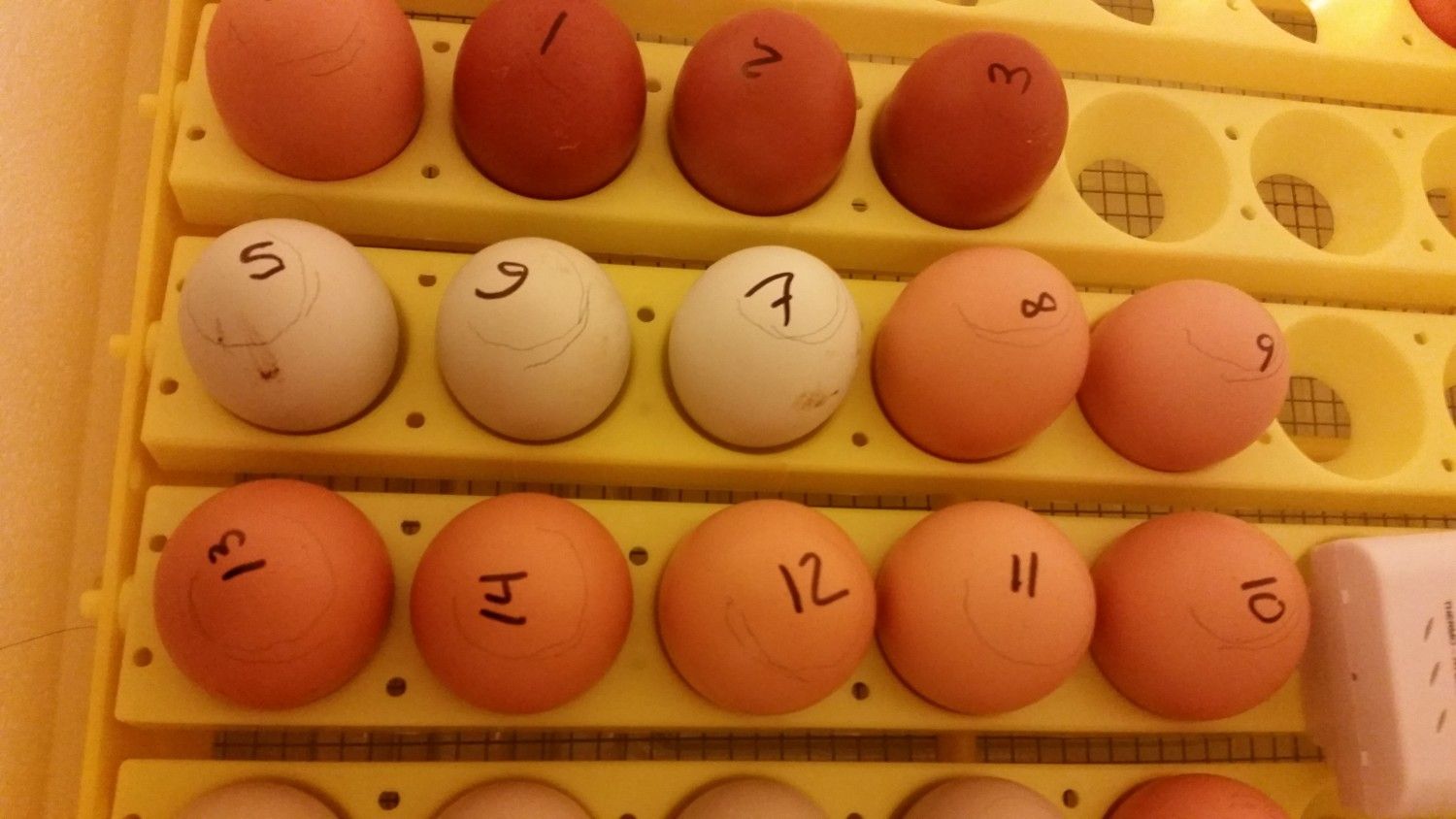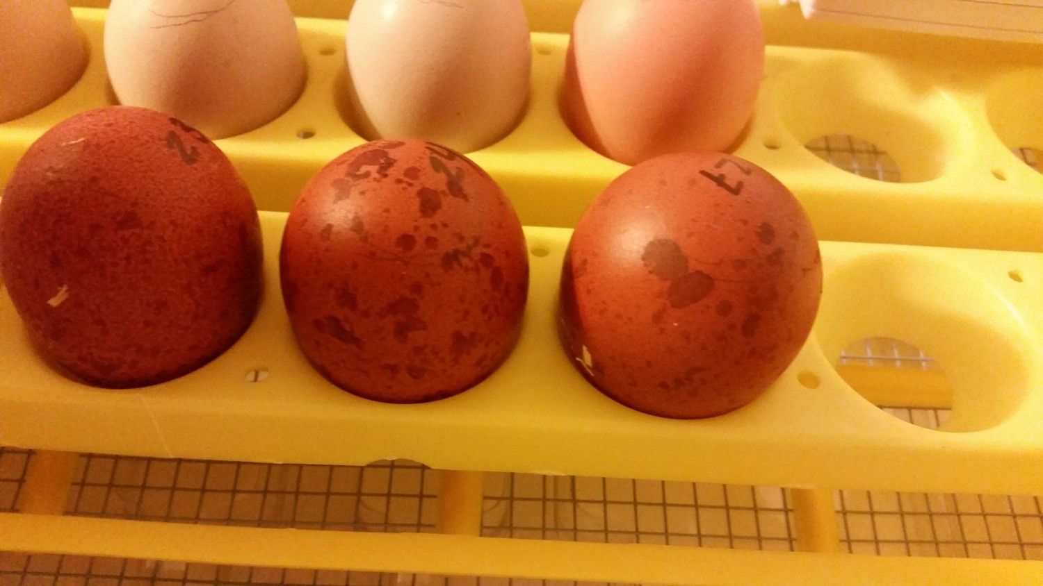 Day 7: Down to 26 out of 27, early death for one Welsummer egg. I did see movement in about half of the remaining eggs and good veining in the rest.