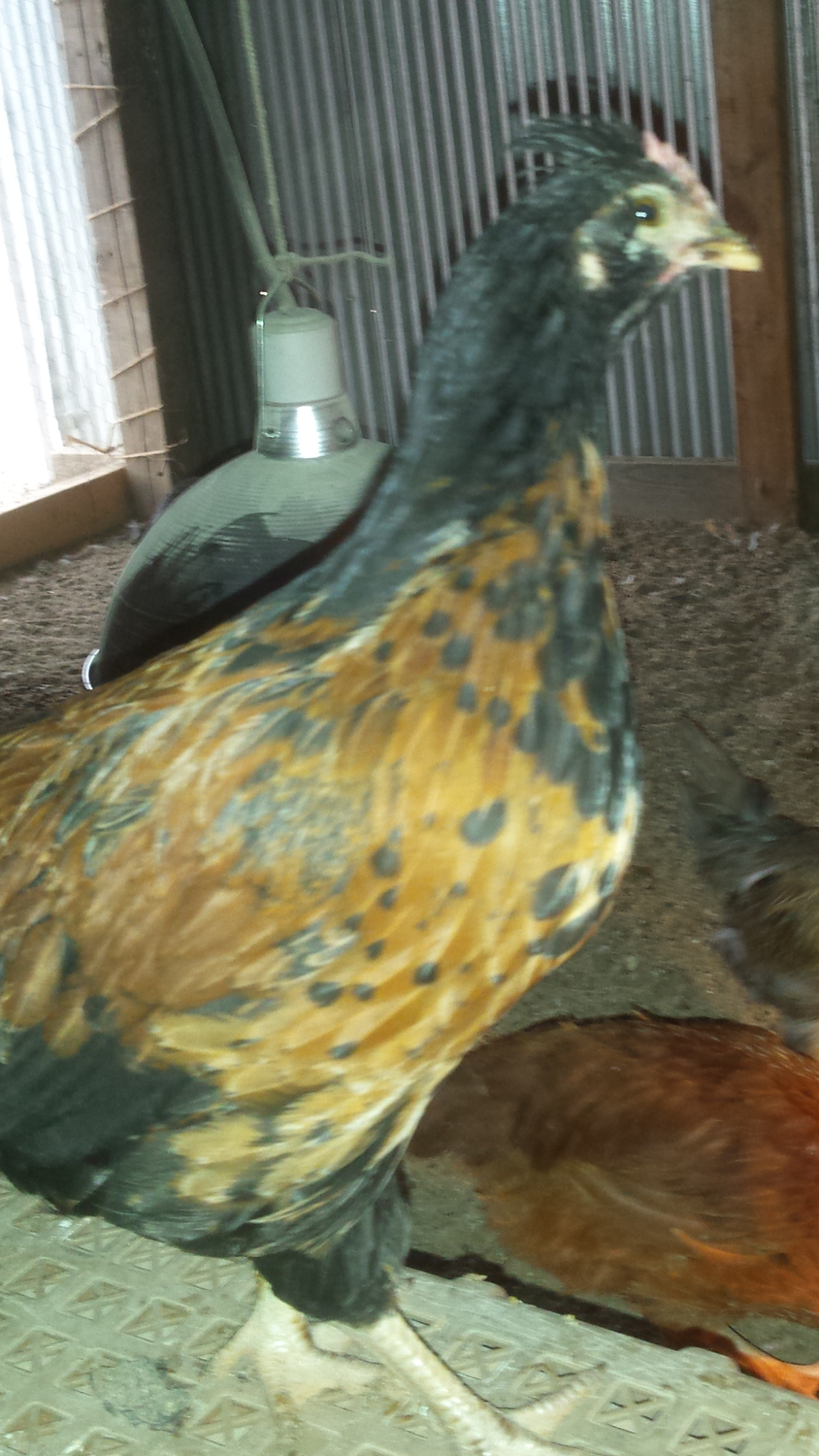 Well I hope this joker is a hen but I have my doubts, It is kinda cool looking. Its a cross of Crested Cream Legbar hen with Copper Maran rooster in hopes of an olive egger