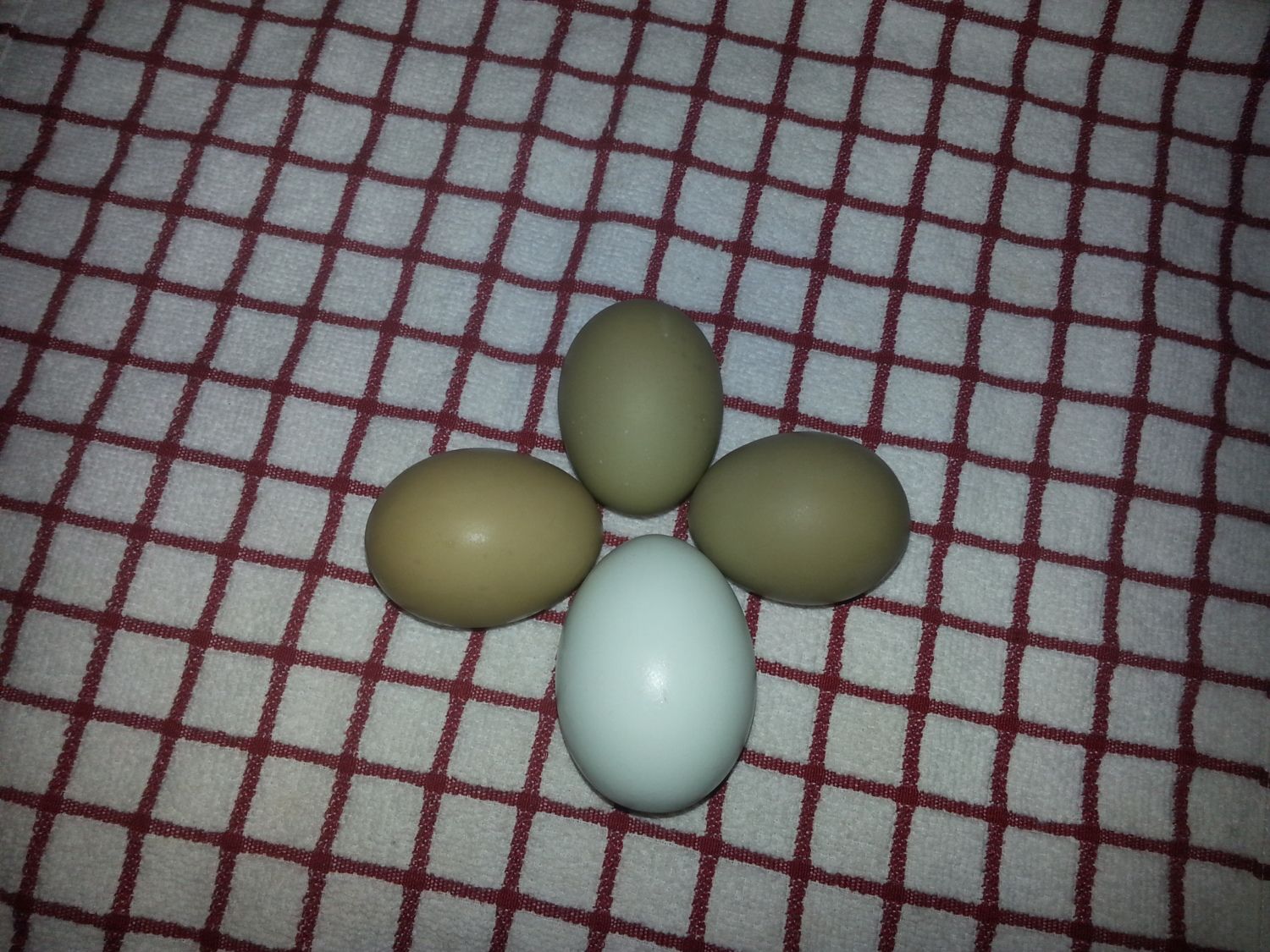 you should get some shade of olive green, maybe not too dark.If I put my Red Sexlink hen in the breeding pen with my Creaml Legbars (one roo and 3 hens) would that cross produce Olive Eggers)?