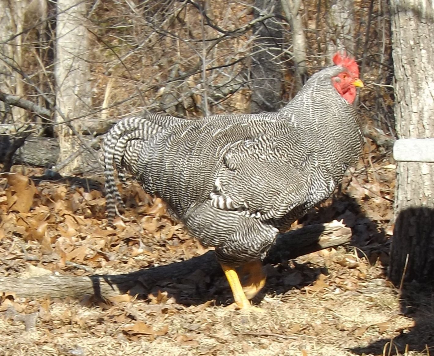 But the wing is the last straw. That is a poor wing set and this fellow must never pass these poor traits on. He too will make a dandy meat bird. These big Rocks dress at around 6.5 lbs. A nice table bird.