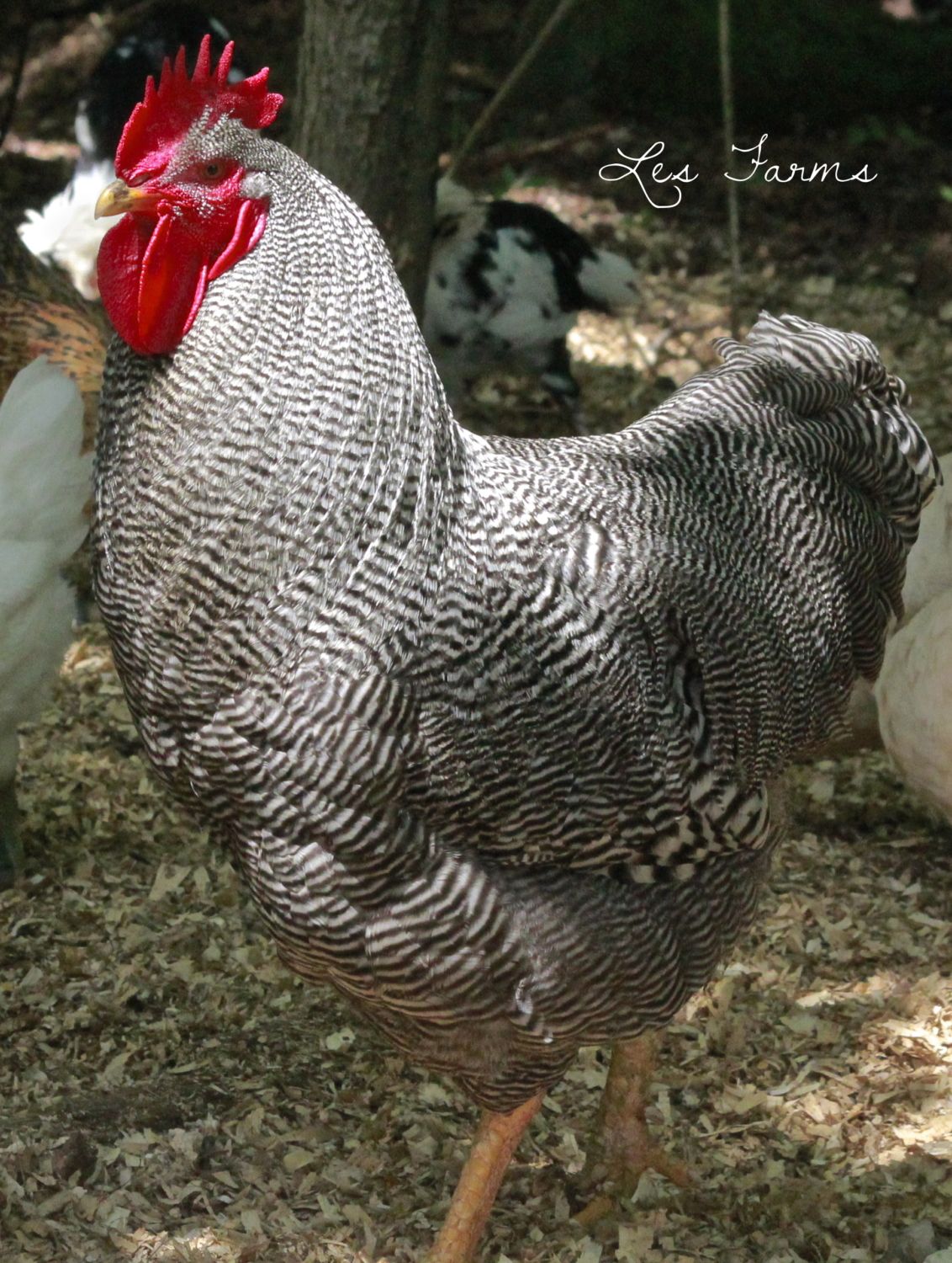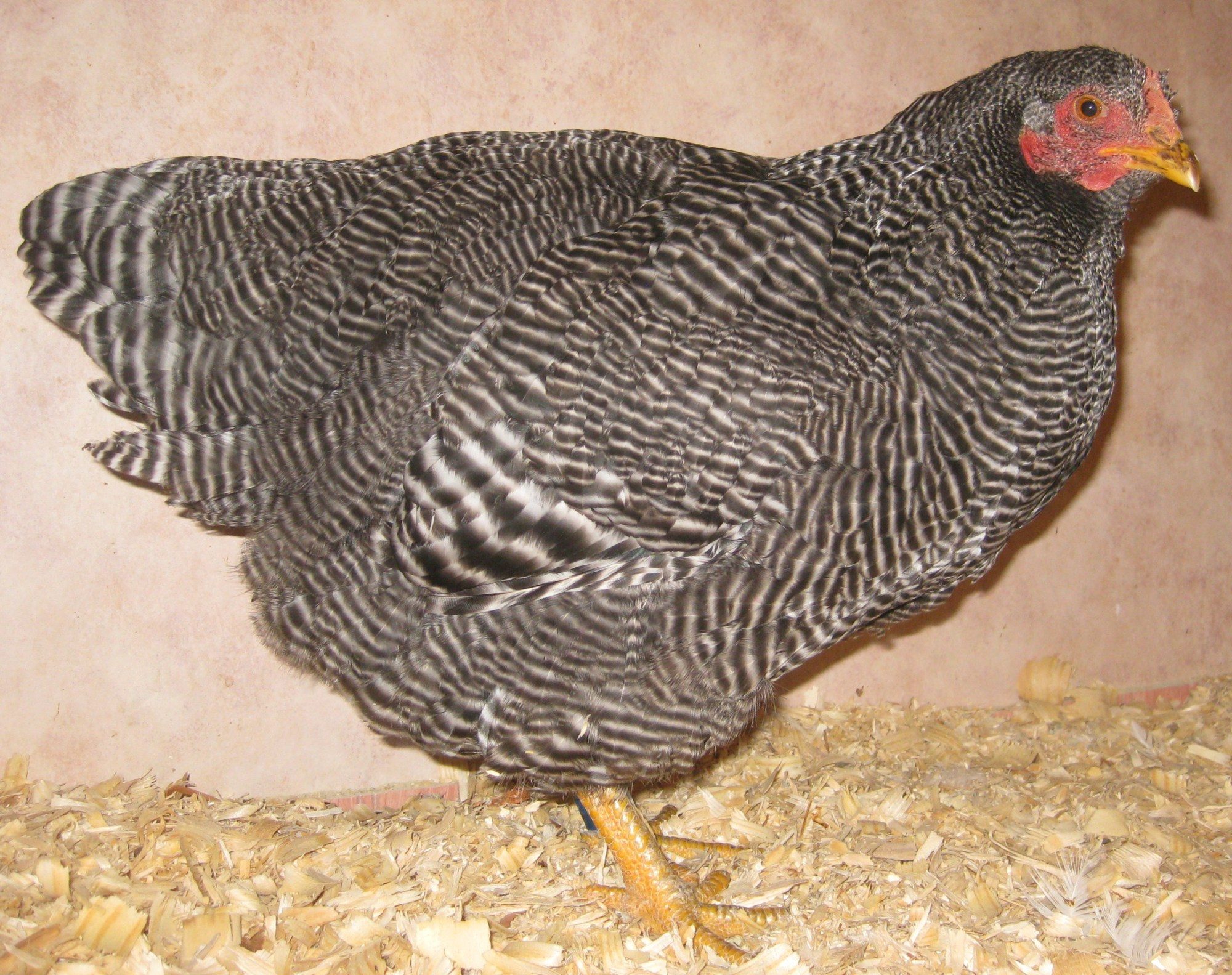 Folks - I raise Standard (some call them large fowl) Columbian Plymouth Rocks. This is quite a project in the works as I started in the Fall of 2010 with a trio of birds from Dick Nieuwland (from Canada) and 1 pullet from Powell lines in Ohio. My females are coming along quite nicely, but I am still fighting low tails (or high tails) in mt males and an issue with brassiness in their hackles, back and saddle area