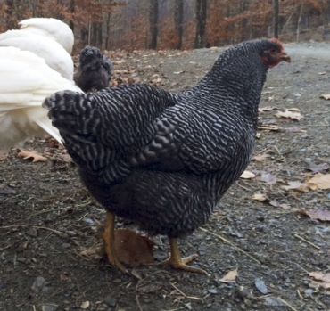 A few years back, we caught a bit of DNA lightening in a bottle with a really good female. Thru breeding this way, Anne, Jill, and three or four other folks, as well as myself, have virtually "cloned" that good hen into dozens and dozens of great looking female Barred Rocks that all look like cookie cutter versions of her. There's a great grand-daughter in my barn pen right now that is one of those. A really solid female line. A male line is tougher with the Barred variety, it seems to me, in my experience.