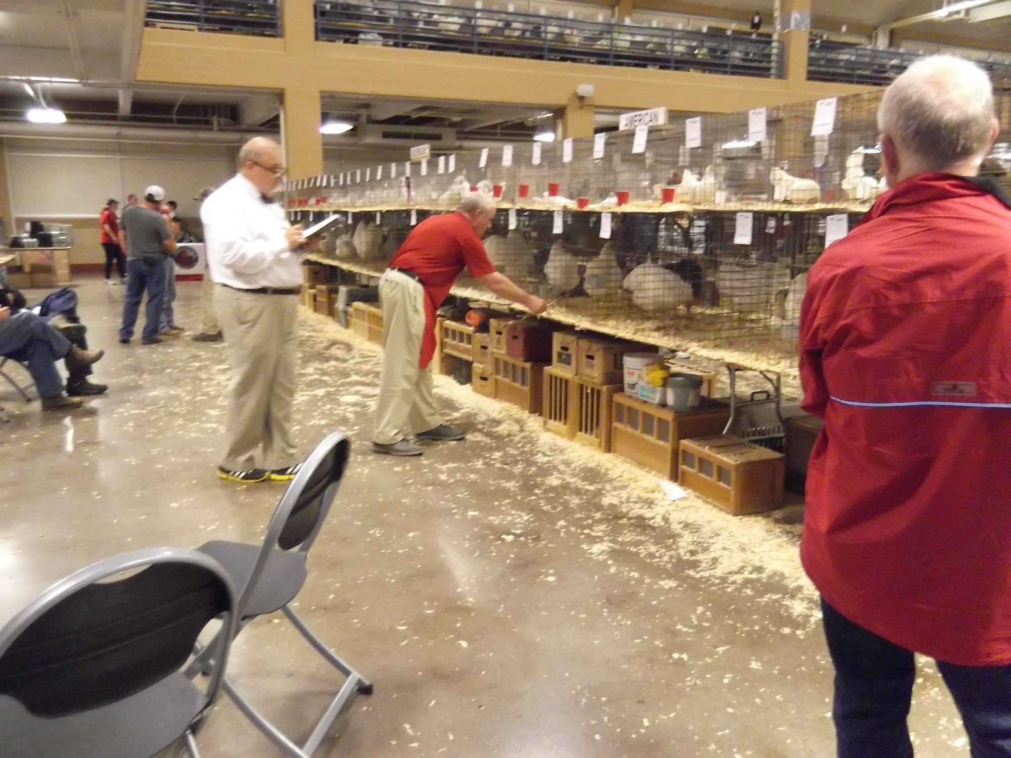 Jeff Halbach and his clerk going back and forth, deciding the order of the White pullets. Thought Ken and I were gonna pass out watching it and how much time it took them to decide. Then, we realized that it was mostly the heat and humidity inside the hall. Dang, it is "close" in there, as is said.
