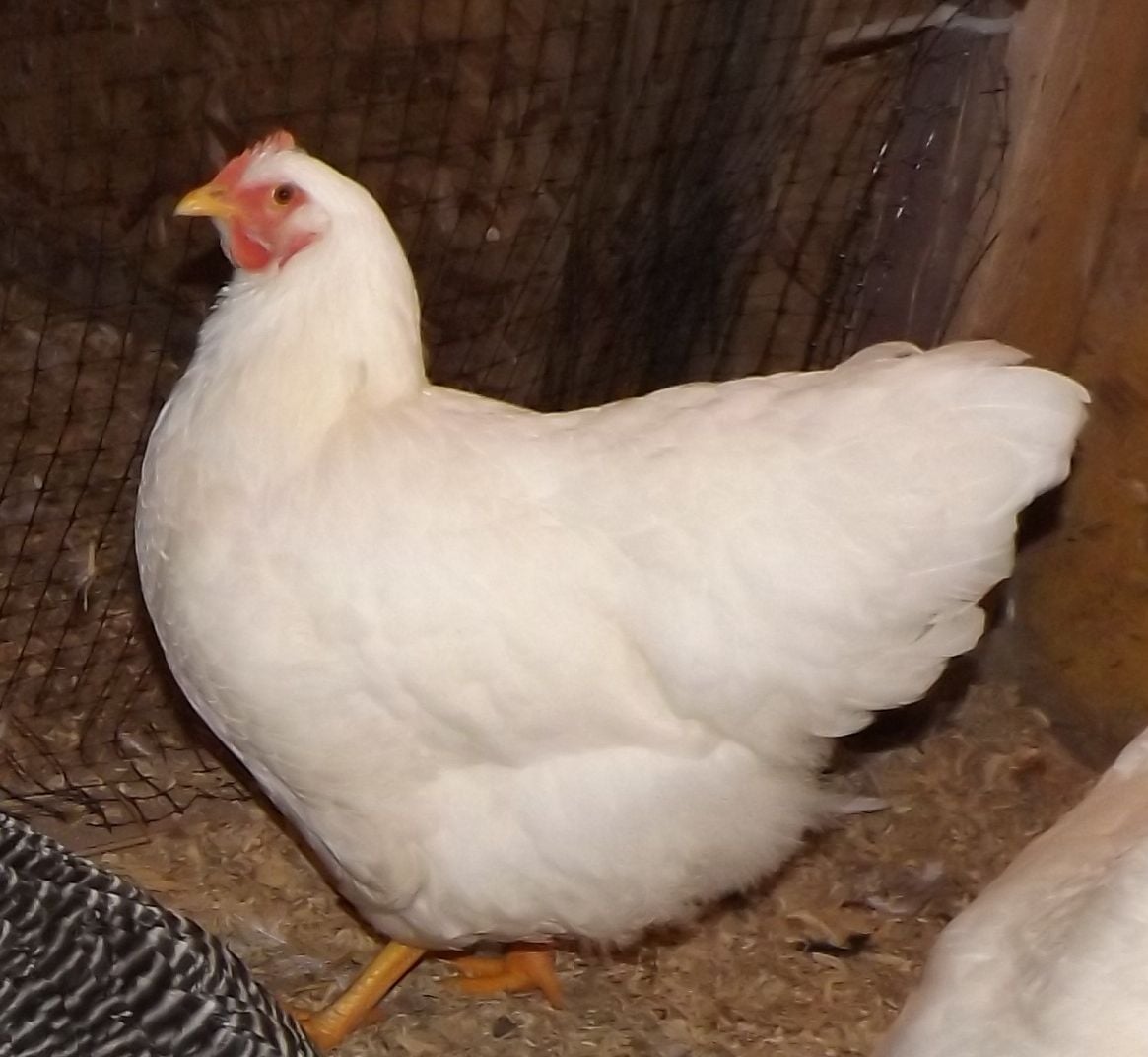 Acquired a white rock pullet. She has a little bit of a cushion, but she has a lot to offer the buffs, wider, thicker feathers, less under fluff, wider skull, a lot of size, good width between the legs which are nice and straight. I'm waiting for her to start laying. I'm not even hatching from any of the buff hens this year. I'll breed this pullet to my buff cock and hatch some chicks. Just watch them grow and see what we end up with, then decide where to go from there. Then she'll go to my partner's to breed to the most promising cockerel we had this year.