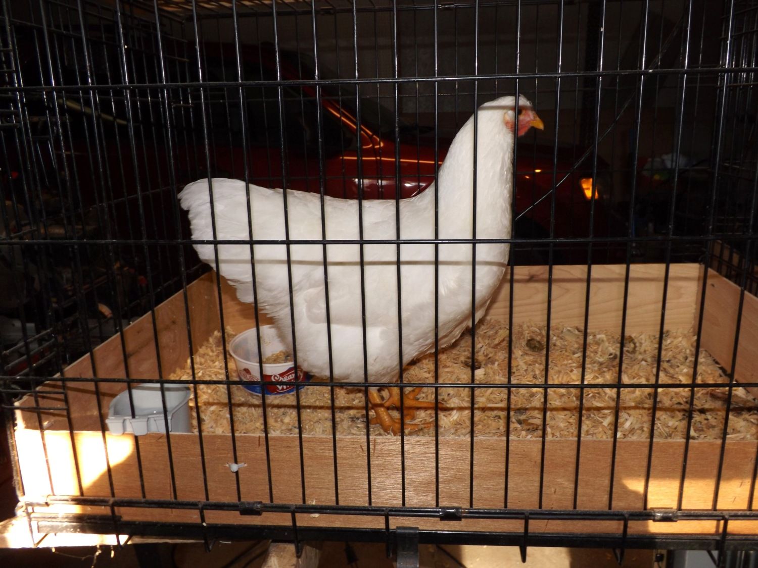 It is amazing how these pullets "round their edges" just at coming into lay. This photo was two weeks ago, coming home from Knoxville. Photos are always deceptive, but you can see she's is young and lack maturity in this photo.