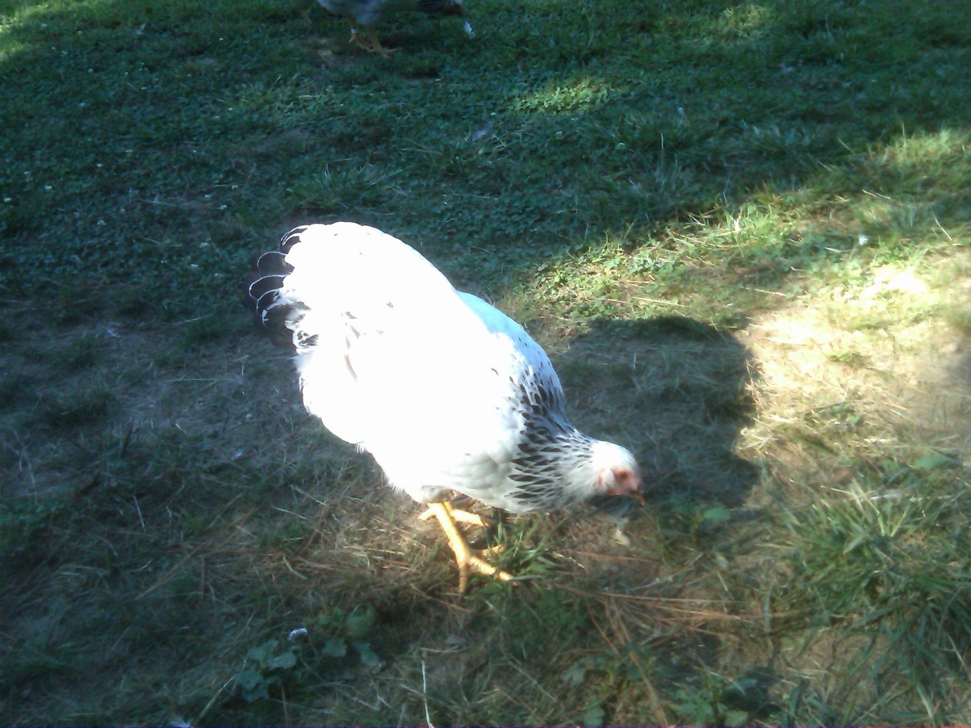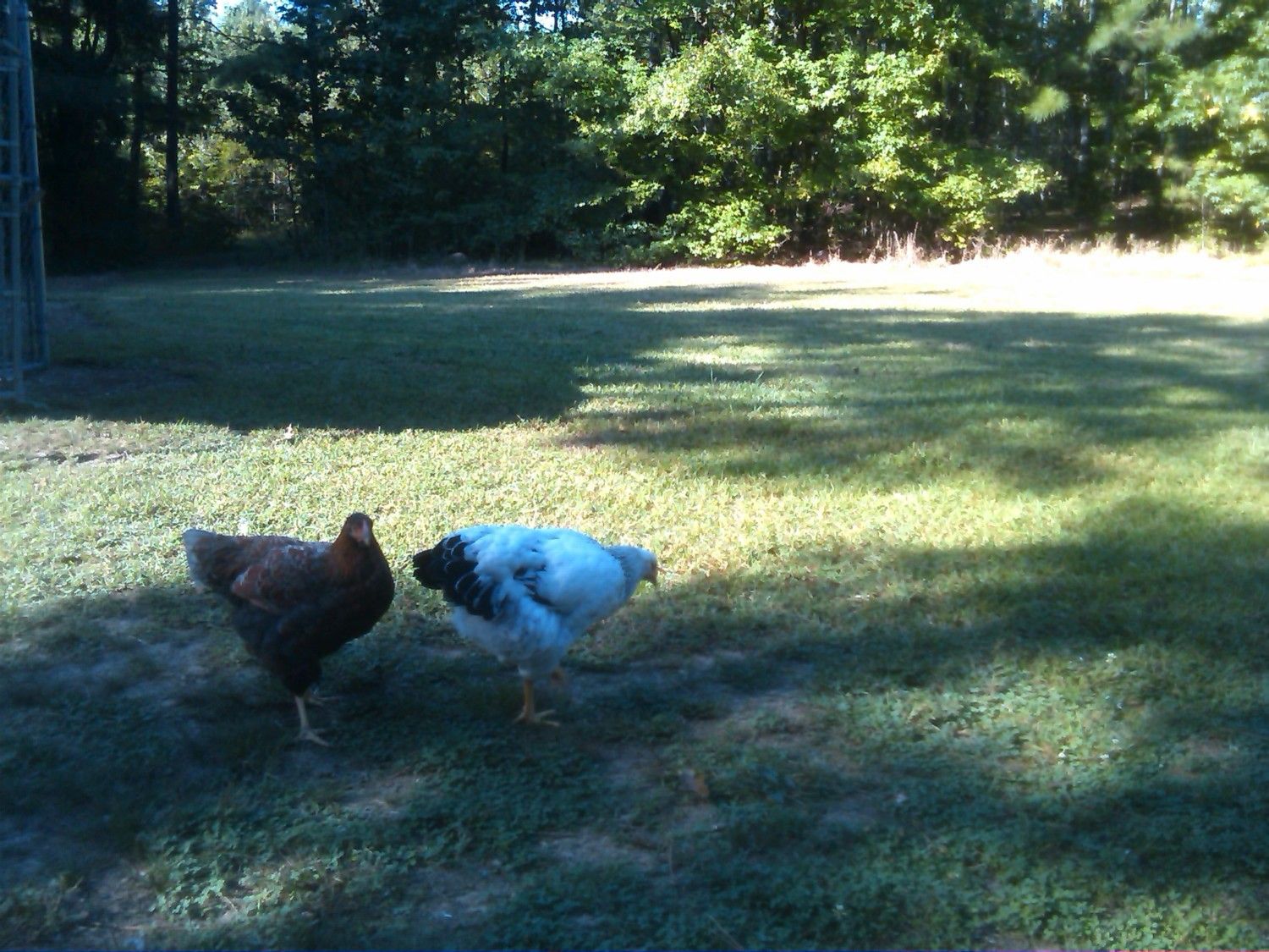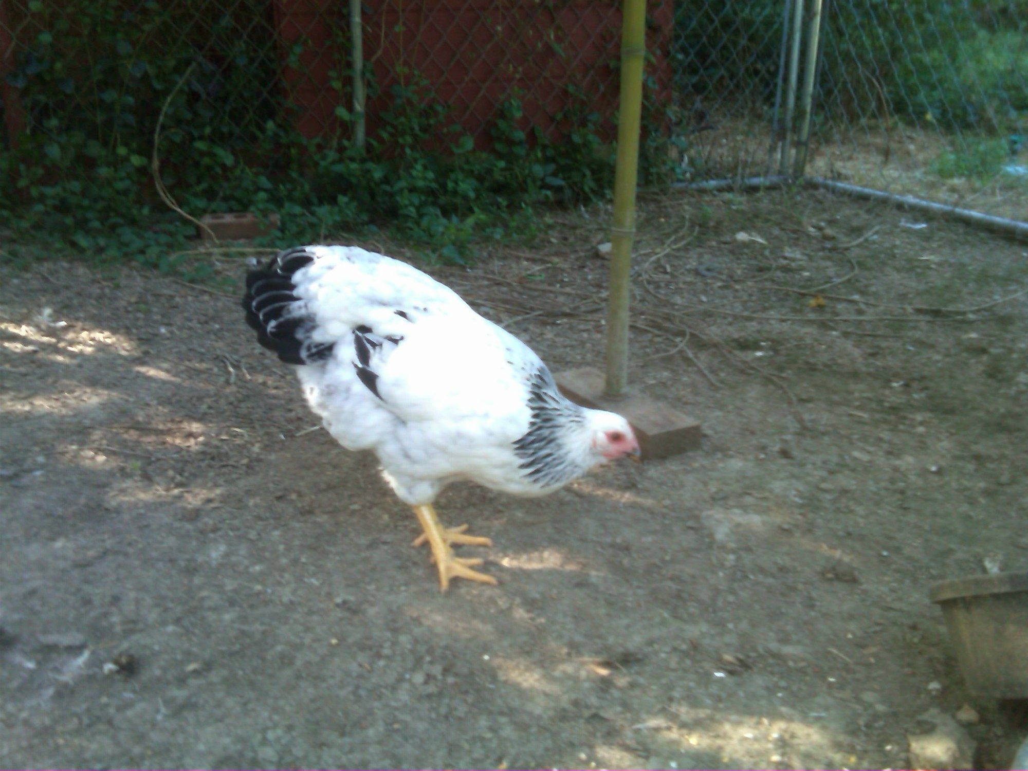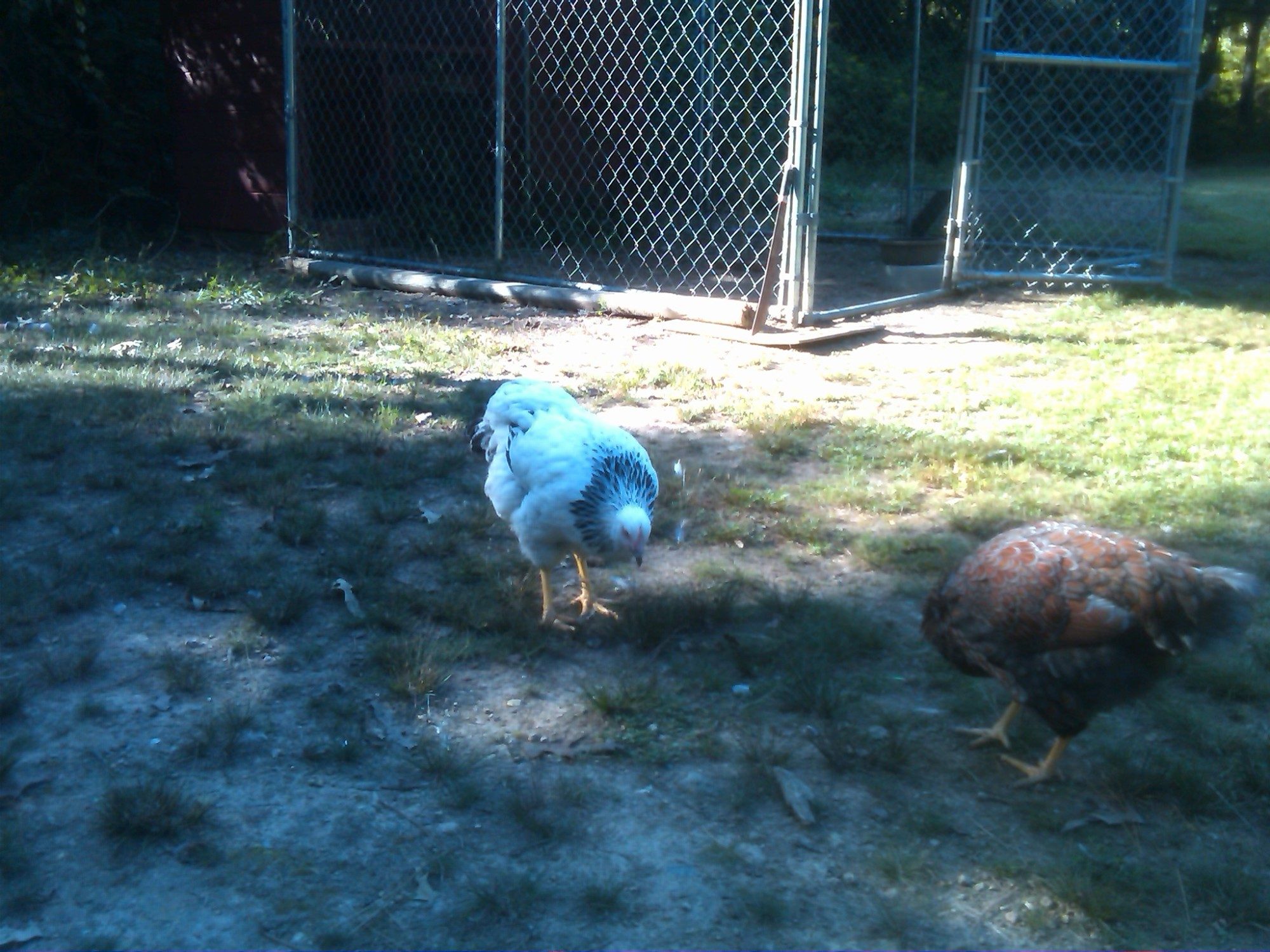 We've been so doggone busy this summer, I don't want to put a ton more on DH, so I told him that if we can get just 2-3 pens built, I'd be happy with that. One of them is my SPR pen. The coop is upon stilts, which is great for the birds in the nasty weather; if it's hot,they can get underneath for nice shade (and that's where they dust bathe, too) if it's raining, they can still be outside and dry. But...I have to crawl around on my knees to get that coop cleaned, and I ain't getting any younger!