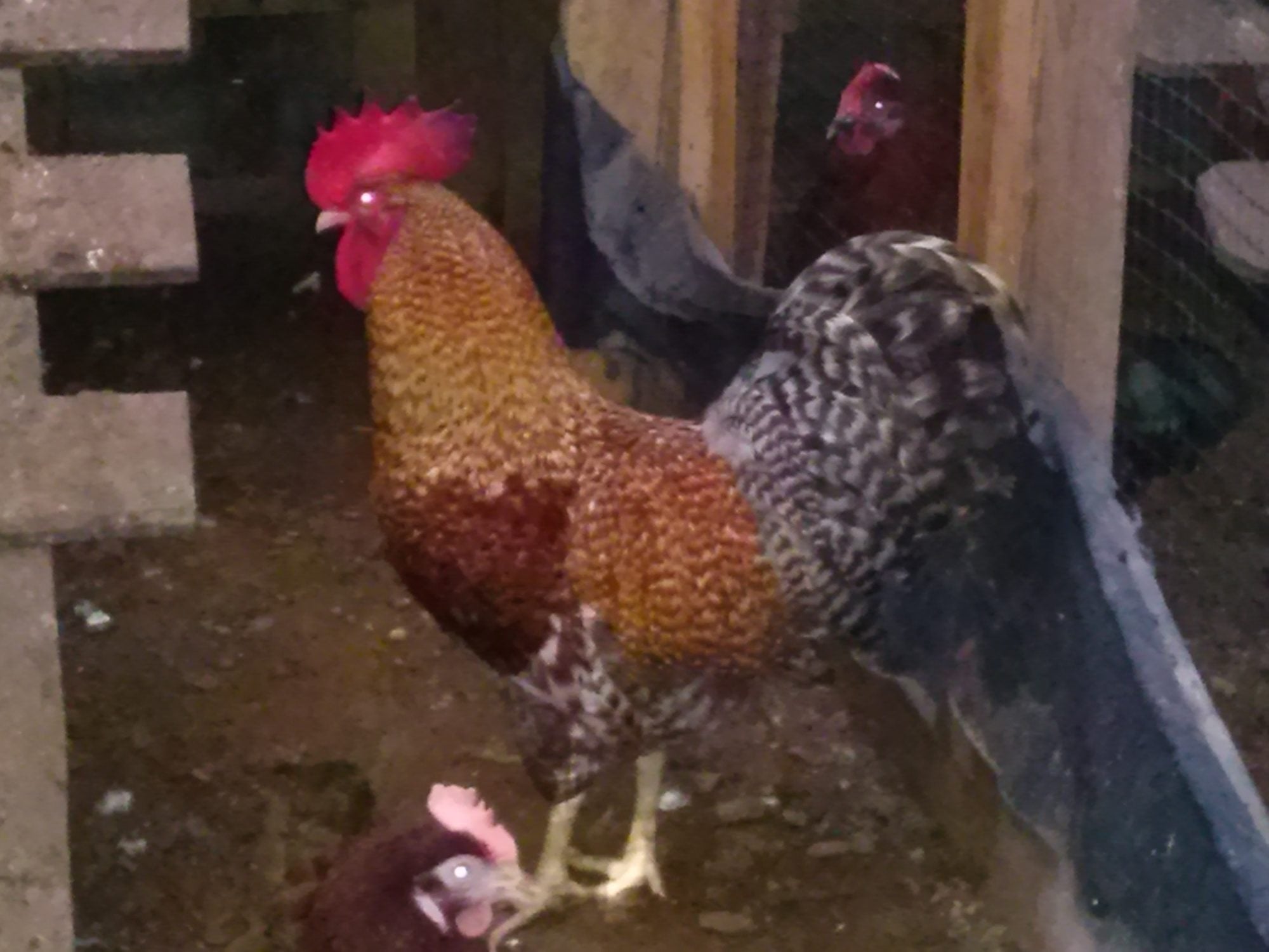 Side by side pullet and roo