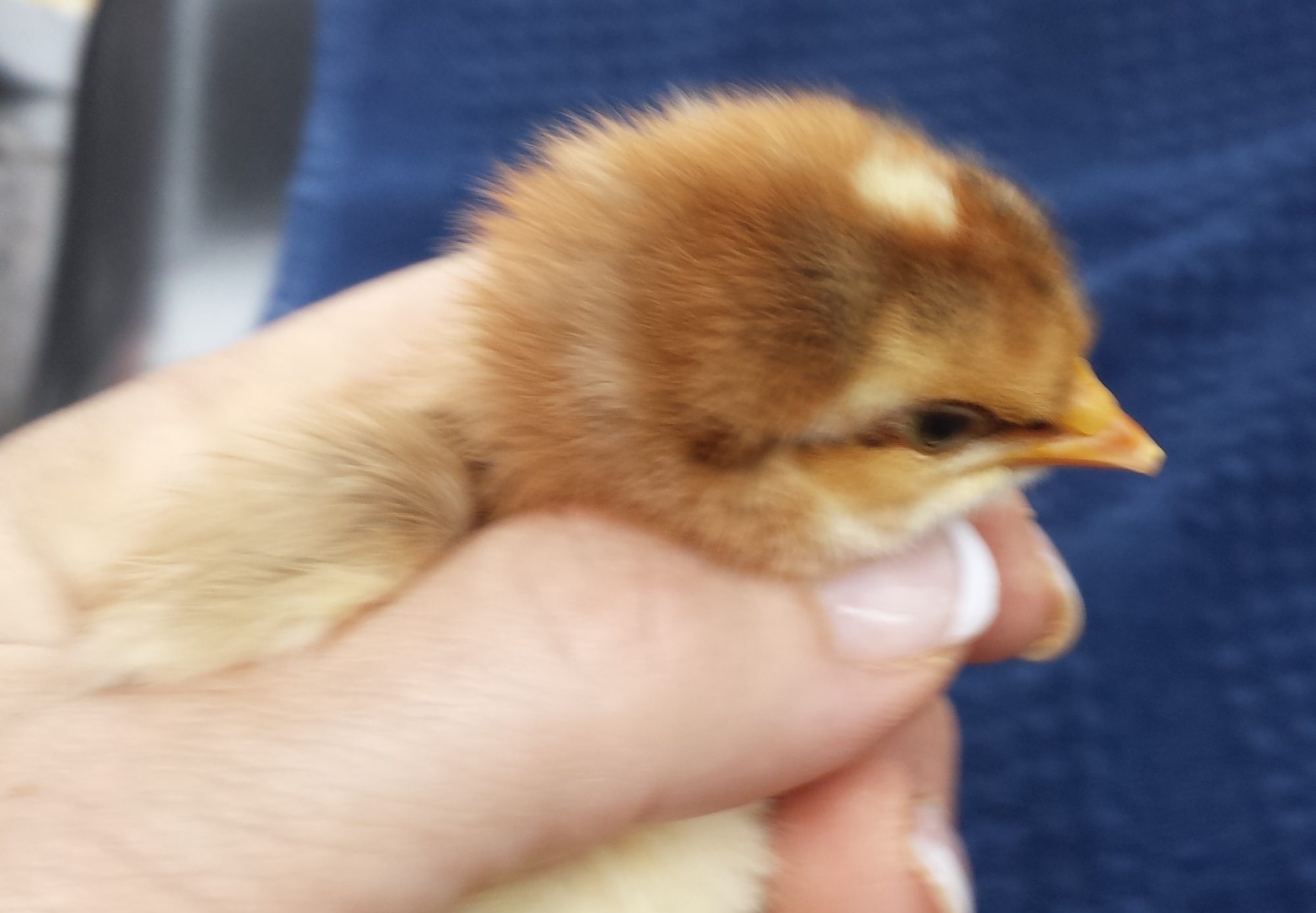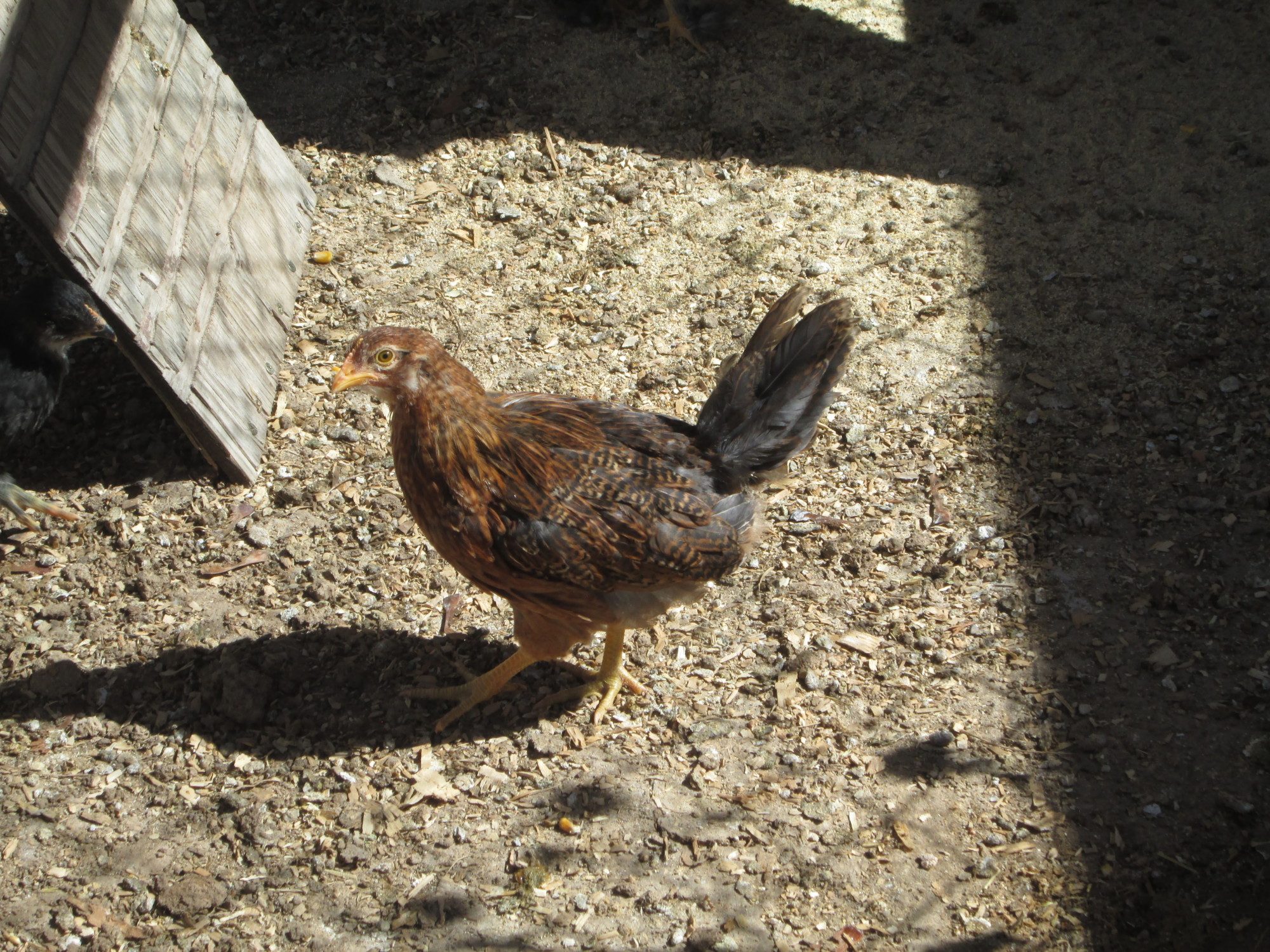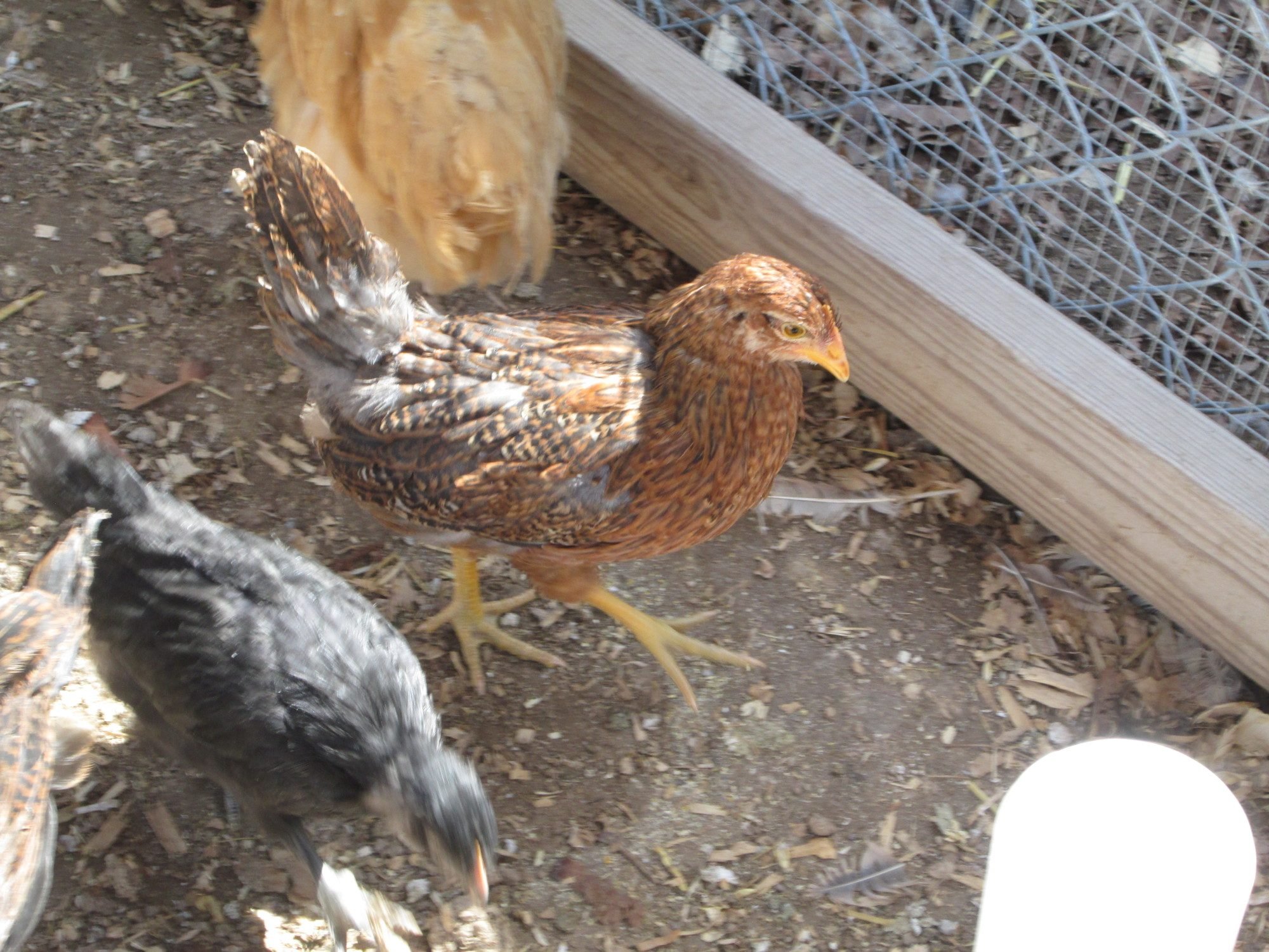 Here is my third pullet. I only kept one out of the hatch. The males were distinctly marked with the white spot on the head in this last group. Just kept a girl from it.