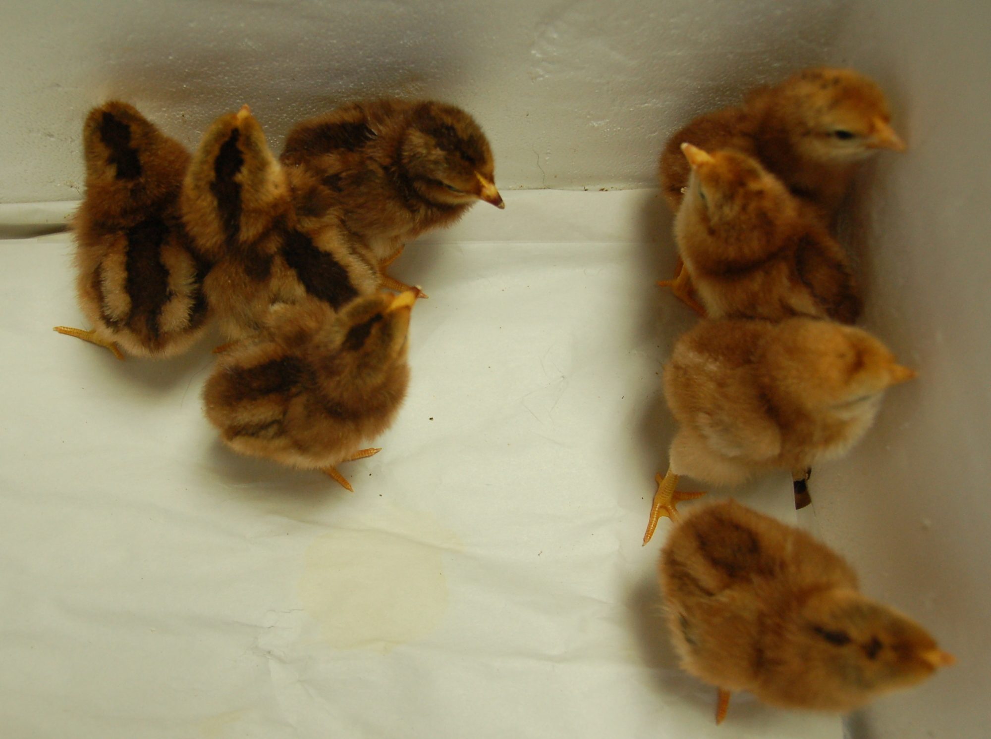 Git a few real nice dark chicks in yesterday's last F1 hatch. Will get some pics today. Then I think I will go ahead and sort all my F1s into two groups, those I know will not be bred regardless of how they feather out and those who are potential breeders. I think this will help prevent me from being tempted to use a bird with nice type who didn't have correct down. ;-) not that I'll be that tempted but... I'd rather be able to look at a group and know they could all have potential. Must be my anal side showing up again. ;-)