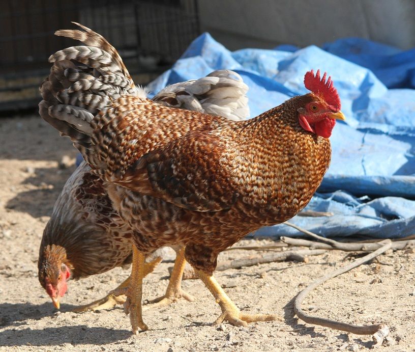 Males will show more black feathers on the chest, full Co/Co roosters should have Red/organge barred breasts, and co+/co+ males will have black barred breasts..OK that makes sense. How would I tell with a Rooster?