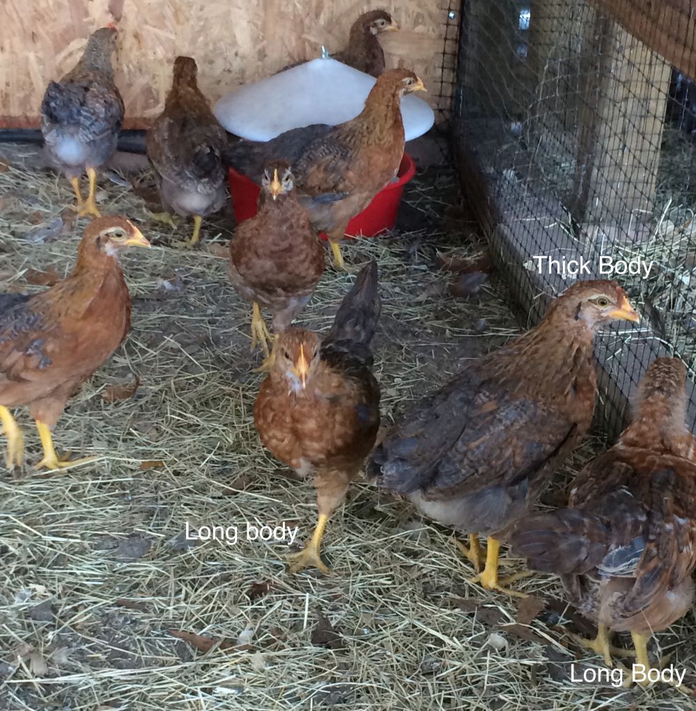 I have 9 hens and 3 roosters. They are all from the same hatching. There a two distinct body types in the flock -