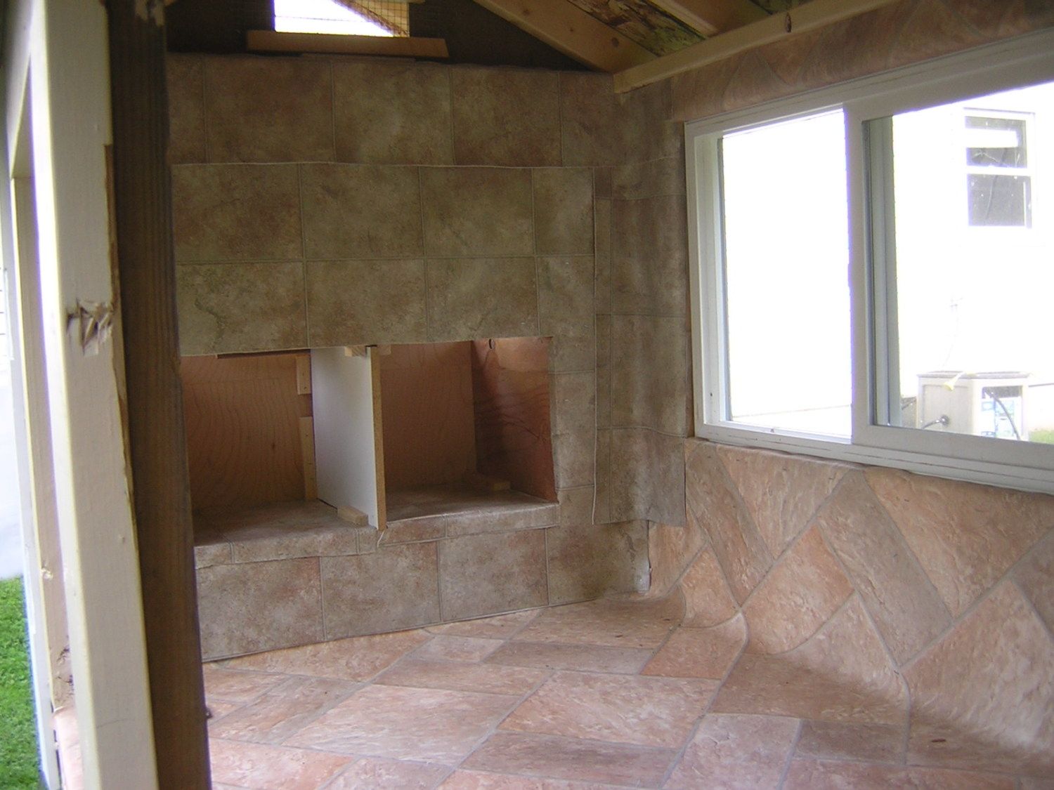 The floor is one piece that warps up the three sides and is folded down over the front edge for ease of cleaning. I've been holding on to these scraps of flooring for years so the wife was real happy to see me use them.