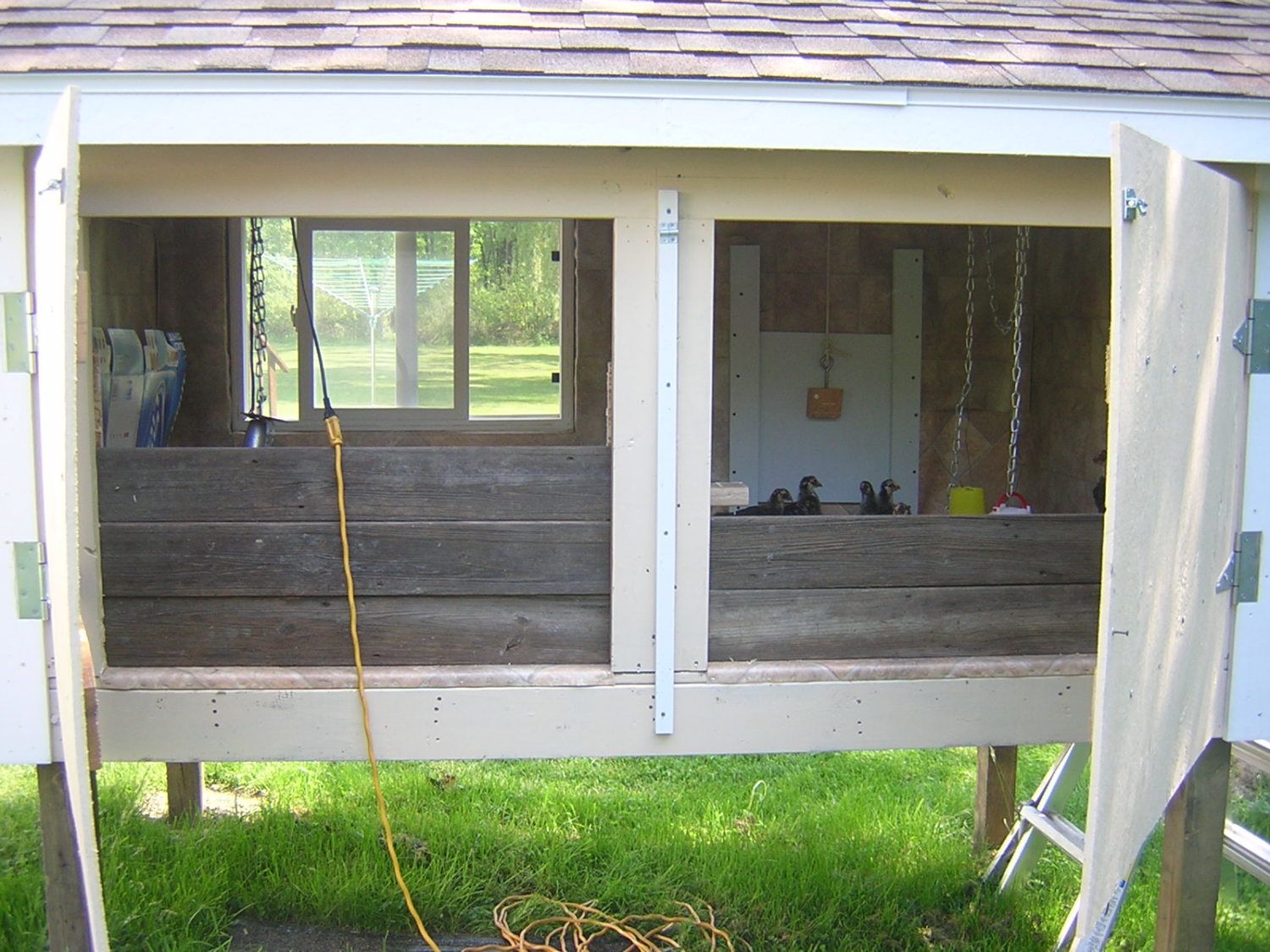 Temporary roost till I can get the real ones and poop boards installed. The next boxes are covered till they are ready to use them