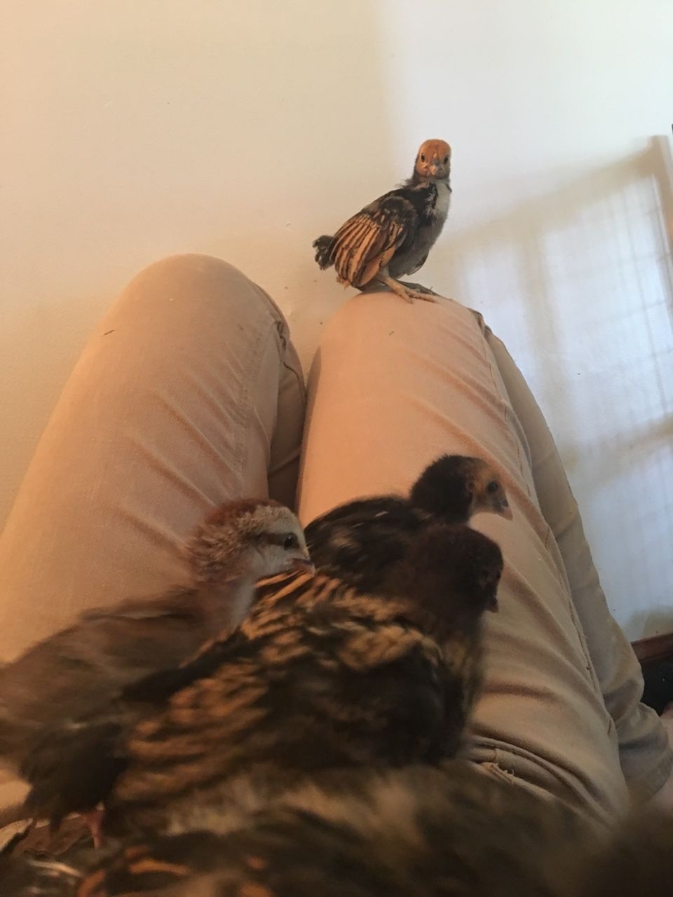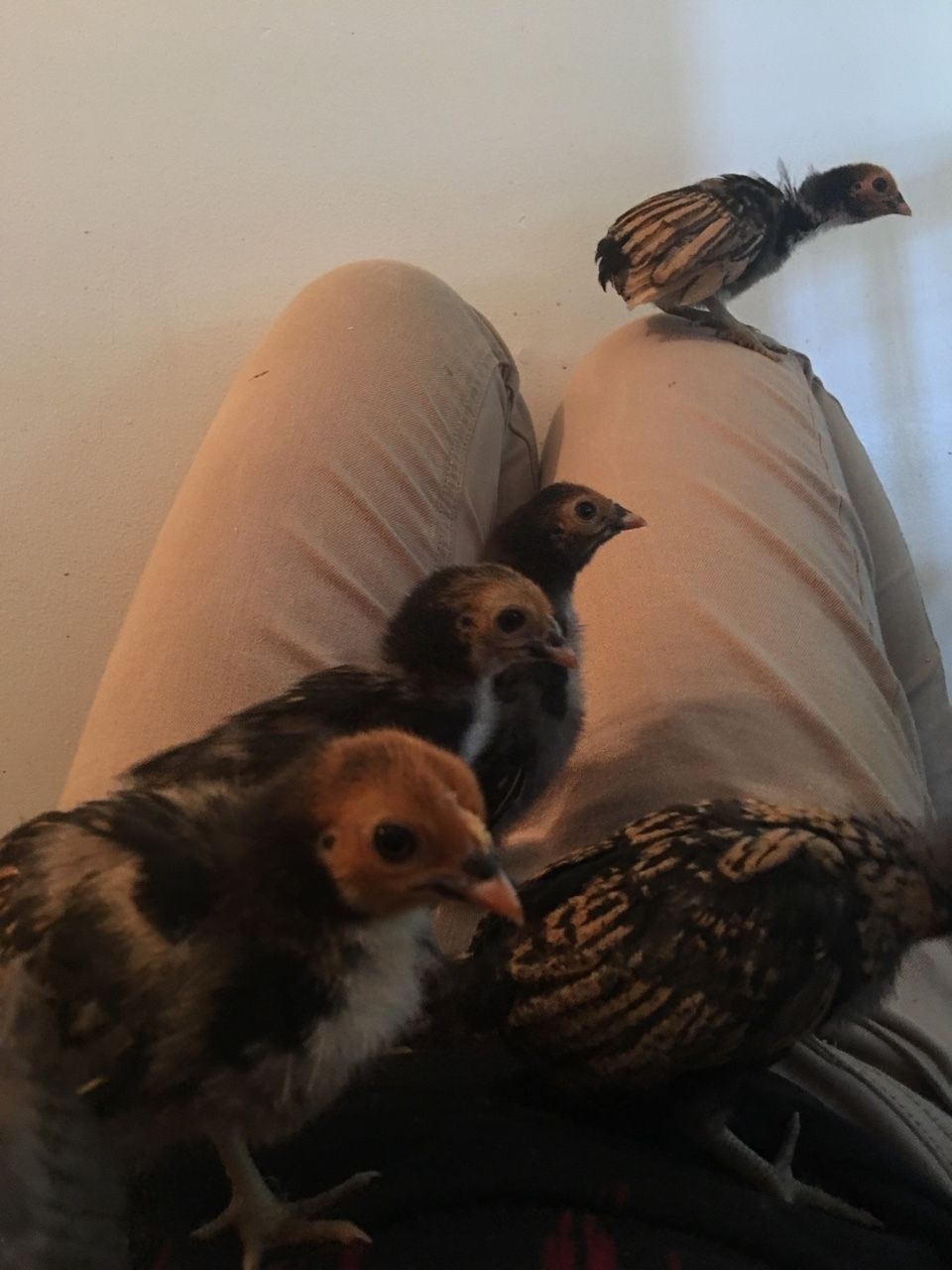 It wasn't long before the local feed store got their order of chicks in. Naturally it was only a matter of time before we somehow ended up driving home with some chicks in tow. Those chicks turned out to be 11 silkies, which have all been enthusiastically claimed by my little sibling (the cochin/silkie/brahma lover). Of course we really do not have the room for 36 chicks (25 from the hatchery and the 11 silkies). Mom decided to call the hatchery and cancel our order, since it would still be many weeks until the eggs would even hatch. While waiting for our hefty deposit to be refunded the longing gnawed away at my mom and I. While we both absolutely love our little silkie flock, neither of us are super-fans of silkies. I was not exactly surprised when, while my mom and sibling went to a dentist appointment, I received a text with a picture of six little bantams. So now mom had her little mystery batch of clean leg bantams (we're thinking 3 sebrights and 3 EE). This just left me feeling forlorn.