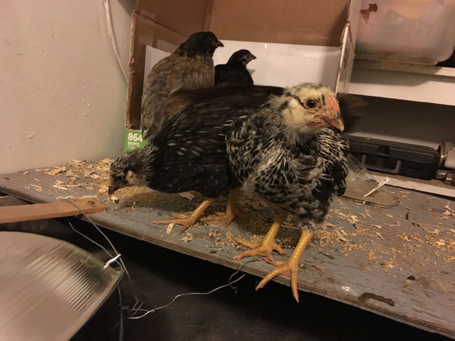 Sylvie has always been lighter then heather, they were easy too tell apart as chicks. Now they are 4 weeks+ and I'm worried slyvie has way too much white and also less tail. They are hatchery birds so I know coloring can be off but is that much white this early normal for a pullet?