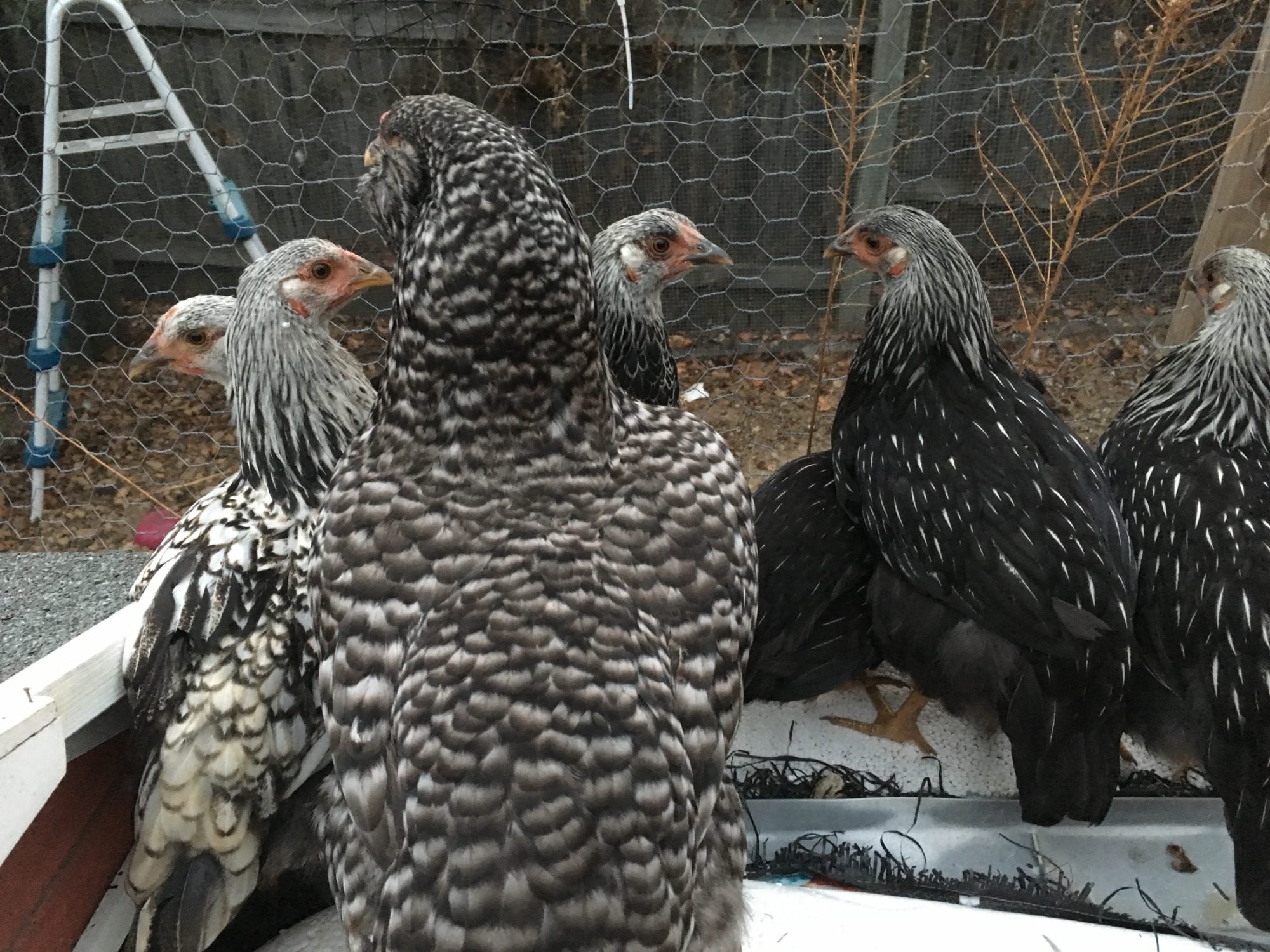 And now introducing Sophie the Sweetie and Miss Penny Peckerton!I just got some SLW's!I have been wanting them since I started getting chickens and yay I snagged two POL pullets!!! $12 a piece. They are hatchery stock and one has pretty poor lacing and the other has incomplete lacing but they are just for my layer flock so that's fine by me! Very sweet girls! They are separated right now and had all the other chickens worked up last night to but should settle down once they are all together.![]()