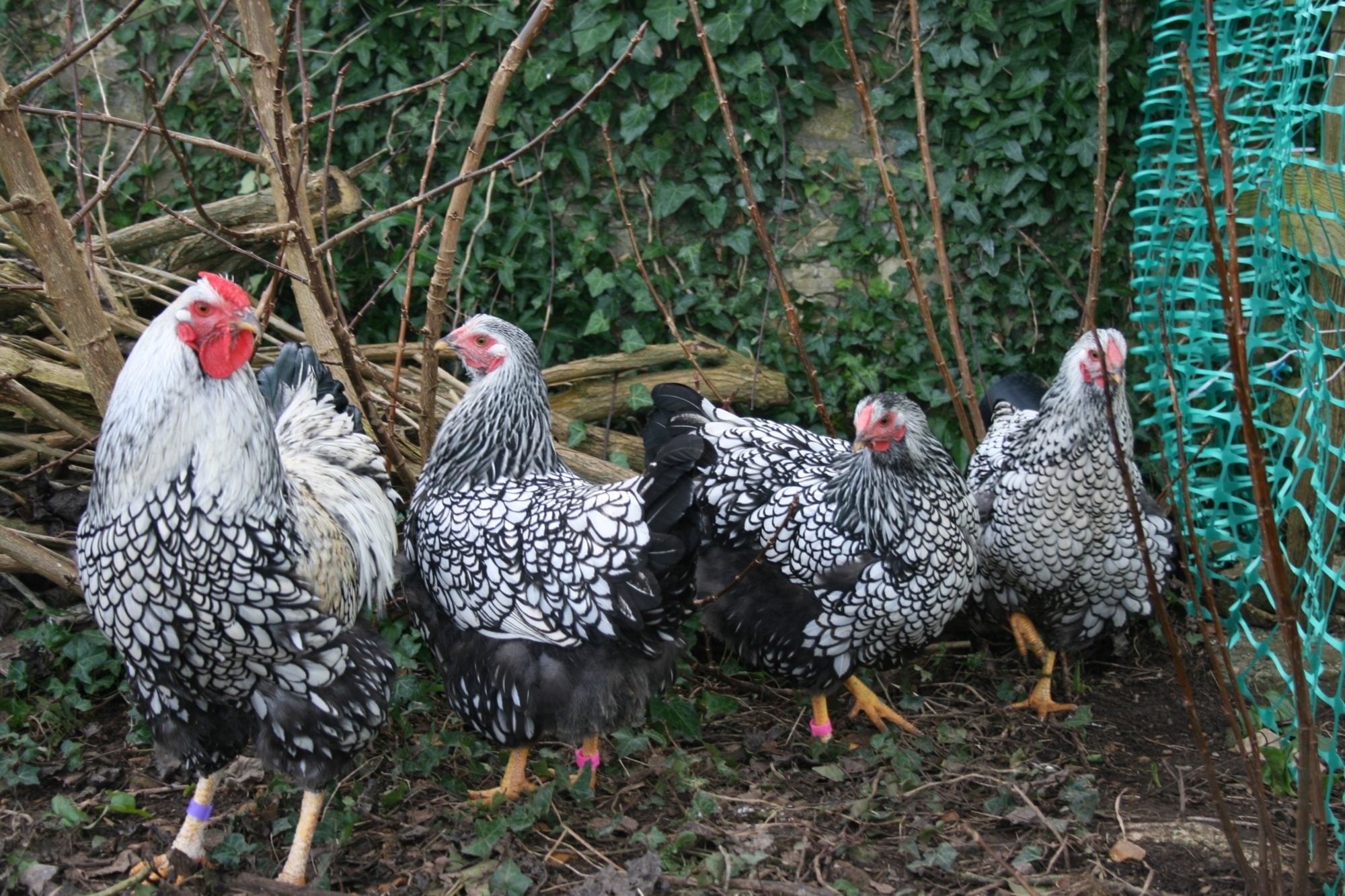 I bought a couple of boxes of hatching eggs to start my own Silver laced wayndotte breeding group last year; here's Sampson the cockerel with his hens Willamina, Winnie and Wanda :)