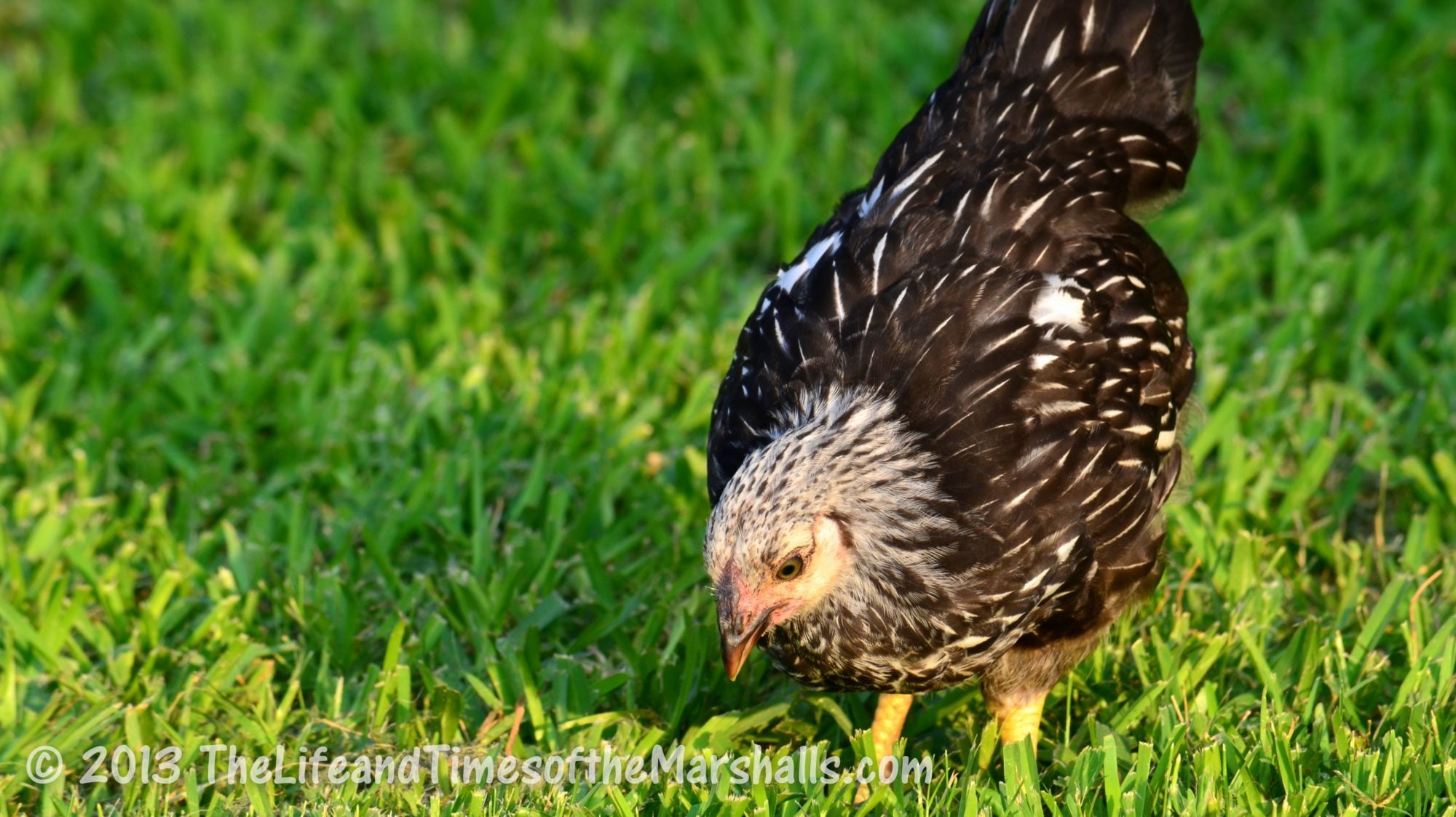 Sarge and his ladies conversing with a 2012 pullet