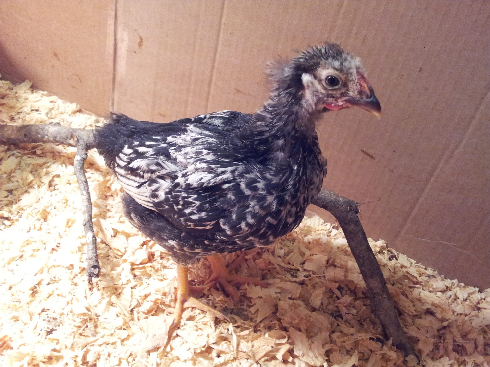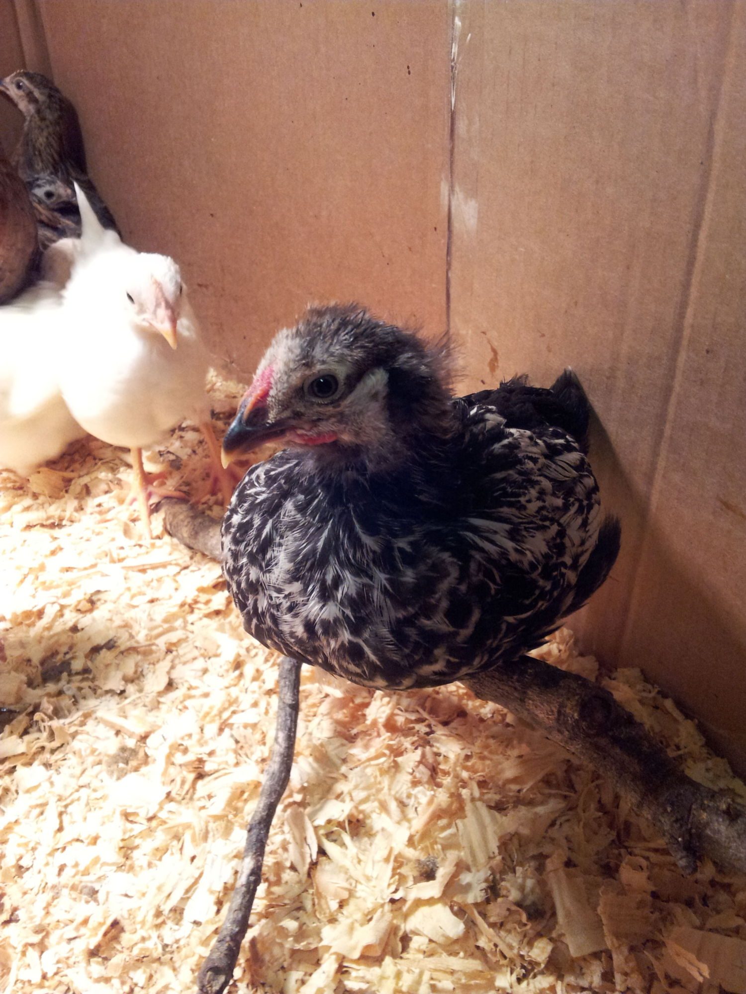 Here is my Winnie... Or could she be a Willie? 4-1/2 weeks old. It seems like her comb is super red compared to the rest of her mixed breed flock.
